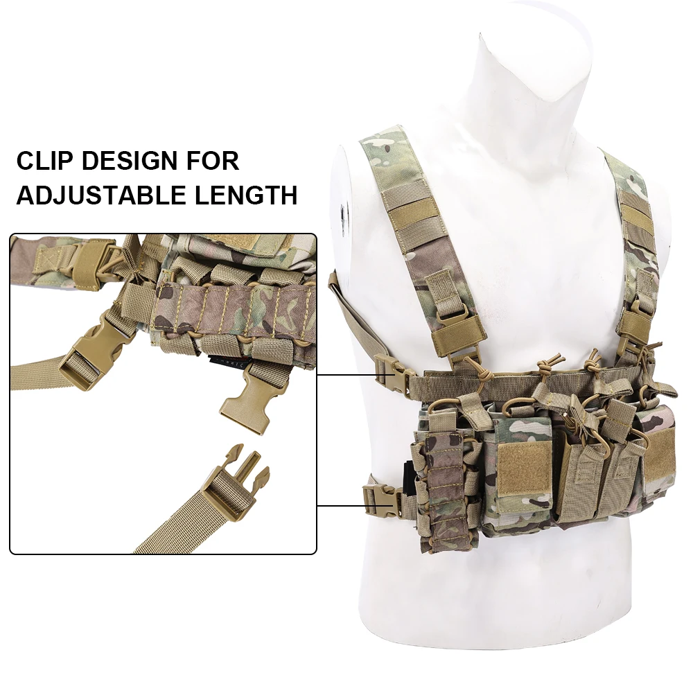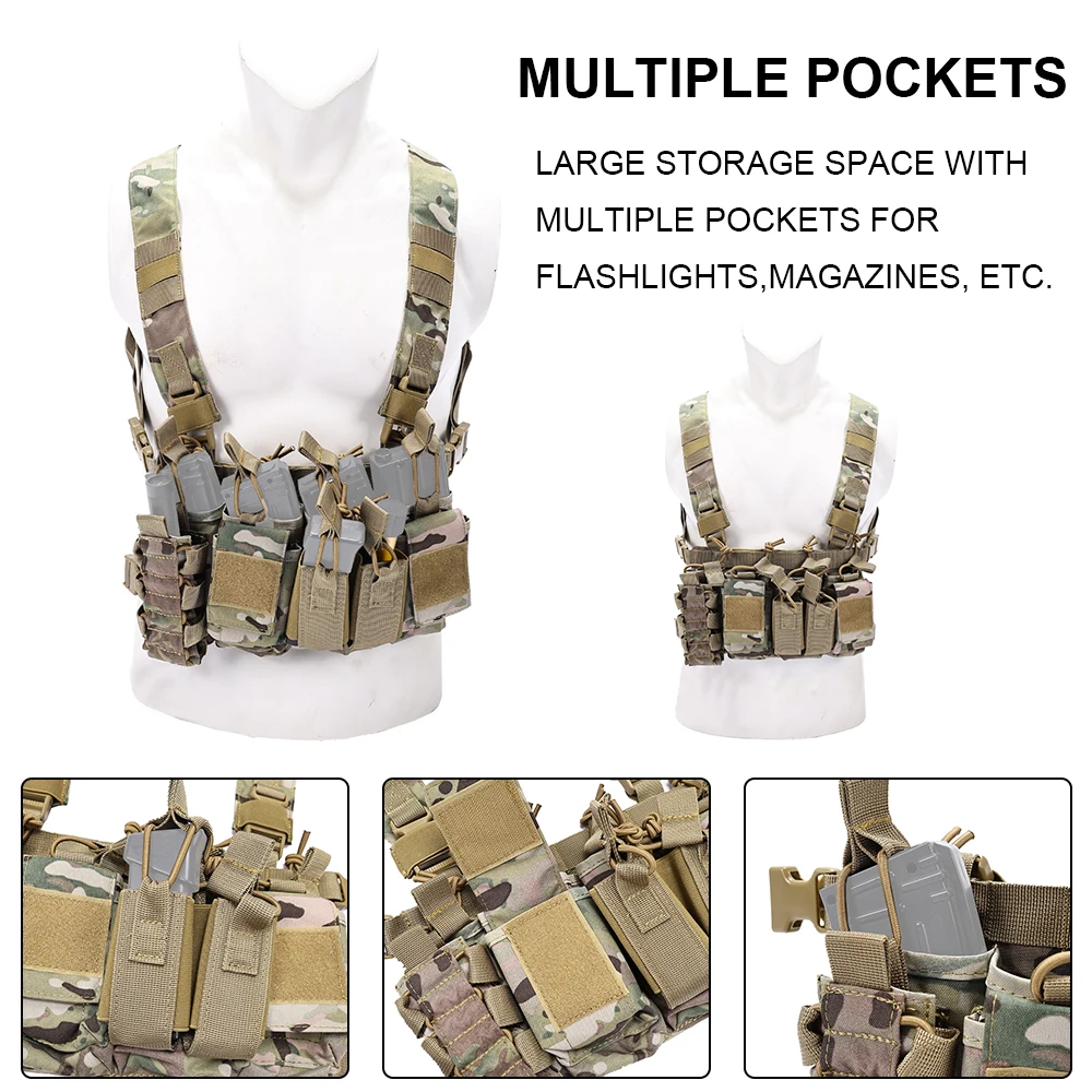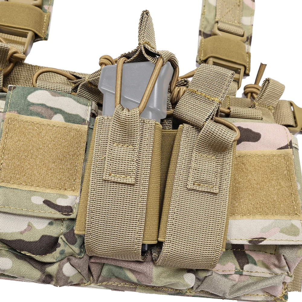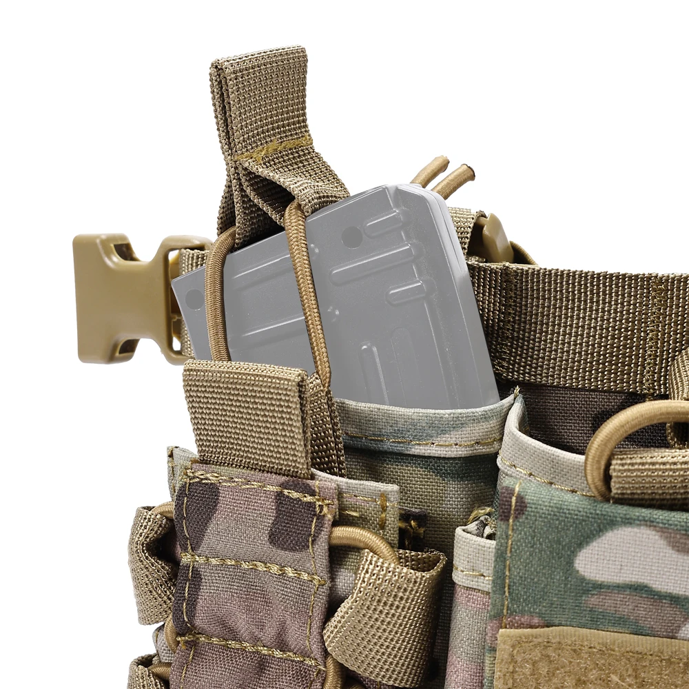 * 4 bolsas para cargadores de rifle (Serie M4/M16, AK) con pestañas de retención.
