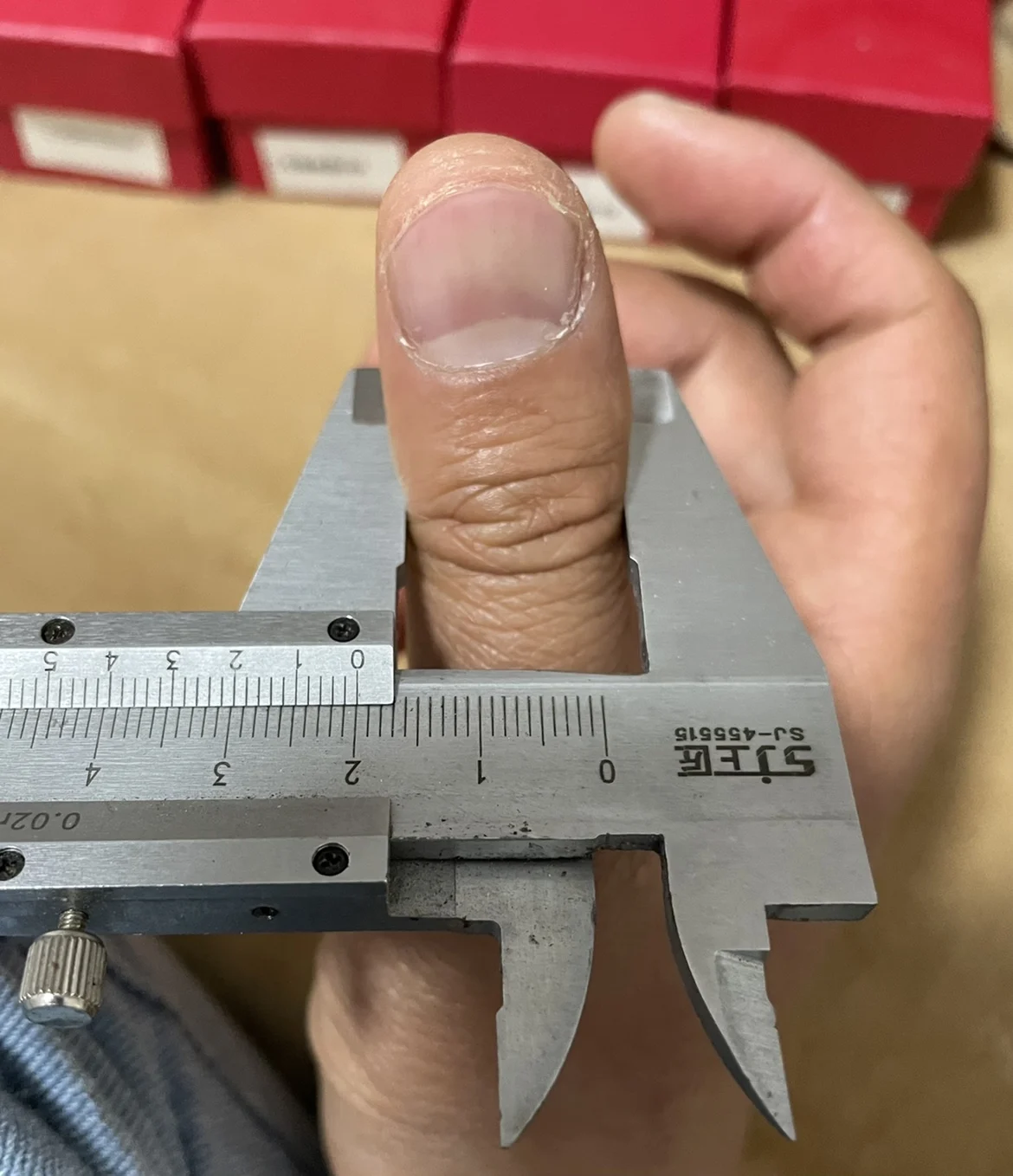 Sostenga la articulación del pulgar y mida para seleccionar la talla.Si es de 20 mm como se muestra en la imagen, elija la talla 20.