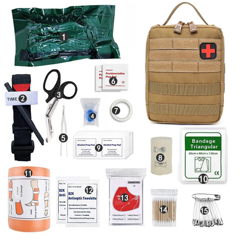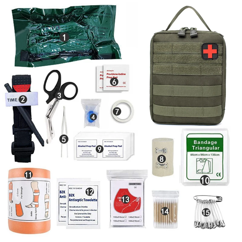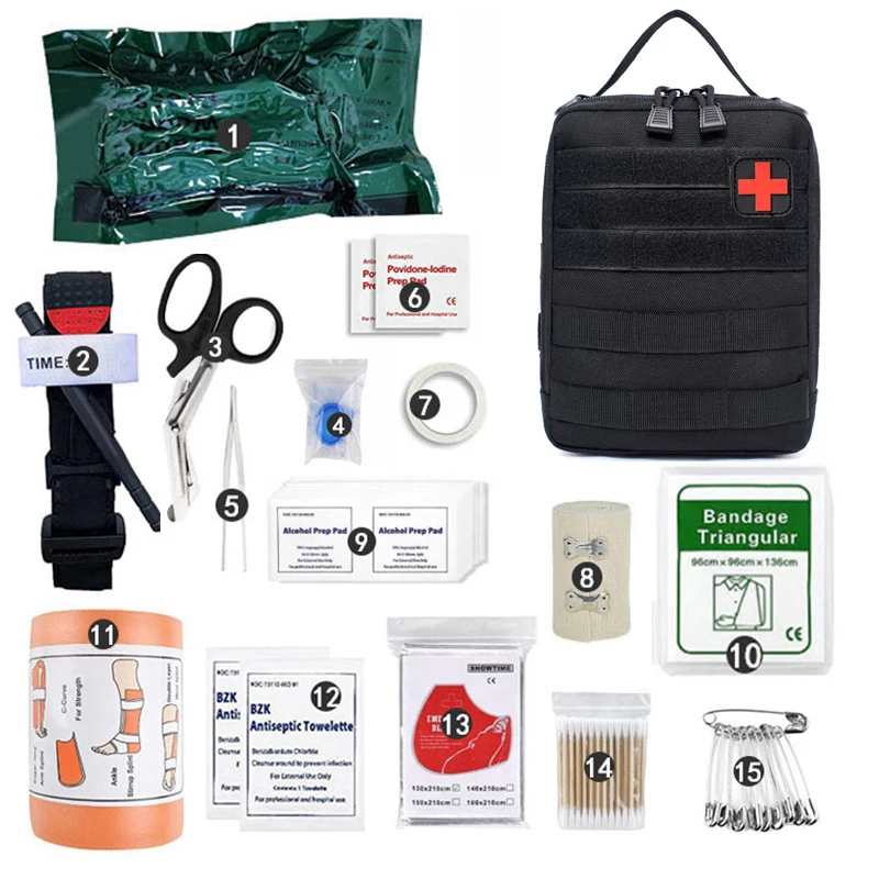 Equipo de supervivencia militar IFAK, bolsa Molle de supervivencia de emergencia médica, Kit de primeros auxilios, torniquete táctico, vendaje, bolsa de caza para acampar