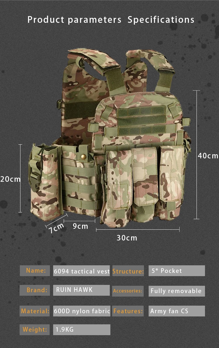 Chaleco táctico Airsoft para exteriores 6094, equipo militar, chaleco Molle del ejército, protección de juegos CS, chaleco de herramientas de caza y tiro