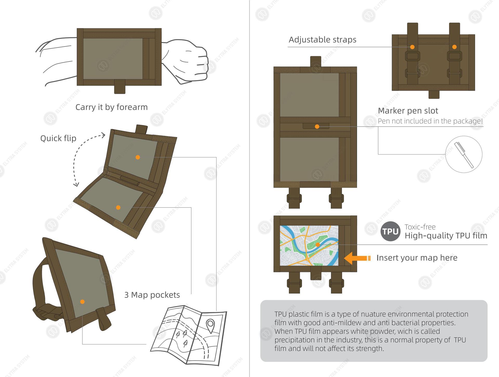 Bolsa de mapa de triple capa con brazo de estilo táctico