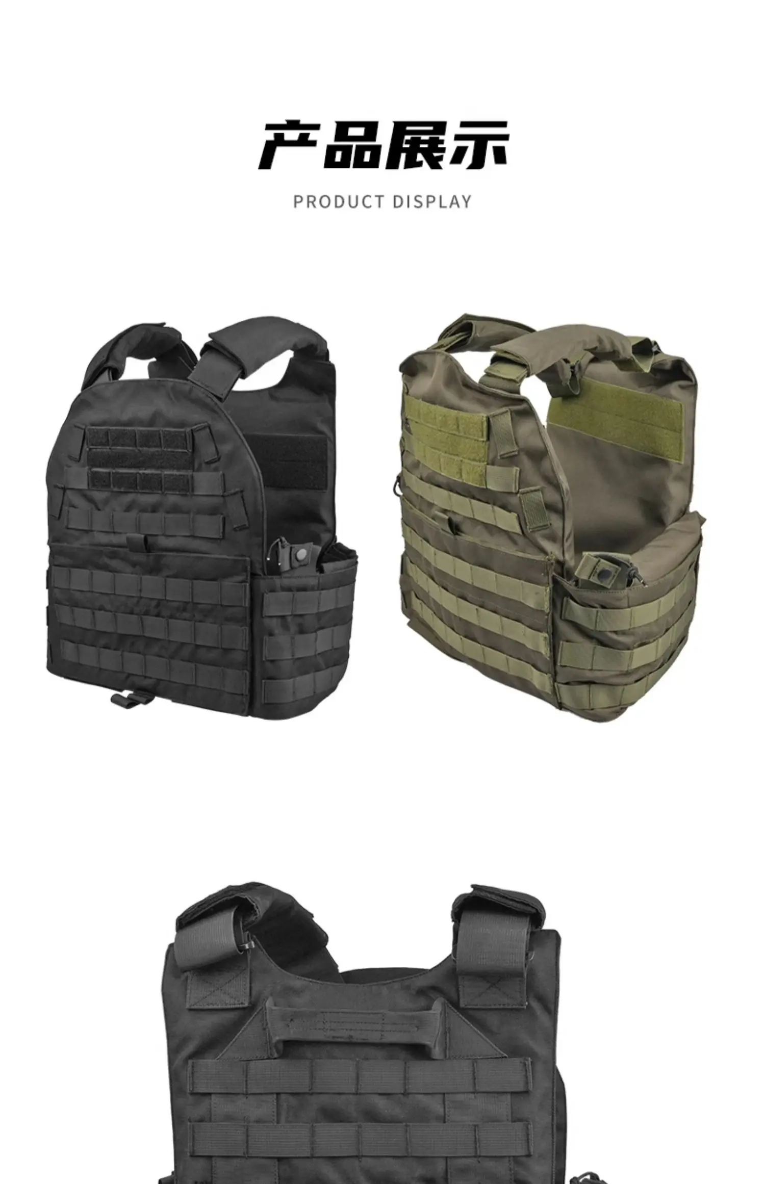 El tejido principal del cuerpo del chaleco es un tejido de nailon 600D, que tiene una excelente resistencia al desgaste, resistencia a la corrosión, resistencia al desgarro y resistencia a la lluvia ligera. El forro interior en ambos lados de la cintura está hecho de tela de nailon de malla transpirable y también tiene la función de agregar placas de protección laterales. Al mismo tiempo, está equipado con un compartimento especial enchufable para walkie-talkies de comunicación. El hombro adopta un diseño de montaje con un gran margen ajustable, adecuado para su uso en todo tipo de cuerpo. Todo el exterior del chaleco está diseñado con ganchos MOLLE, lo que permite el montaje y carga de diversas bolsas de accesorios tácticos como bolsas para revistas, bolsas de herramientas, bolsas de utilidad, etc.