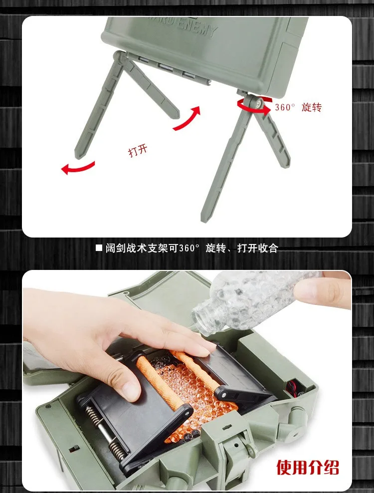 ... El soporte táctico en la bomba de cuentas de agua lo hace conveniente para el diseño táctico, y el soporte de 360 grados es giratorio, se puede abrir o cerrar, fácil de llevar.
