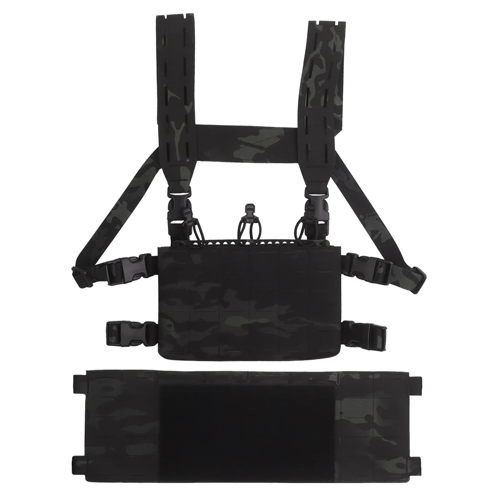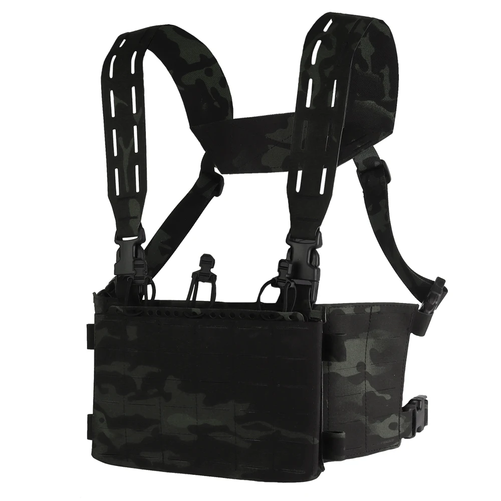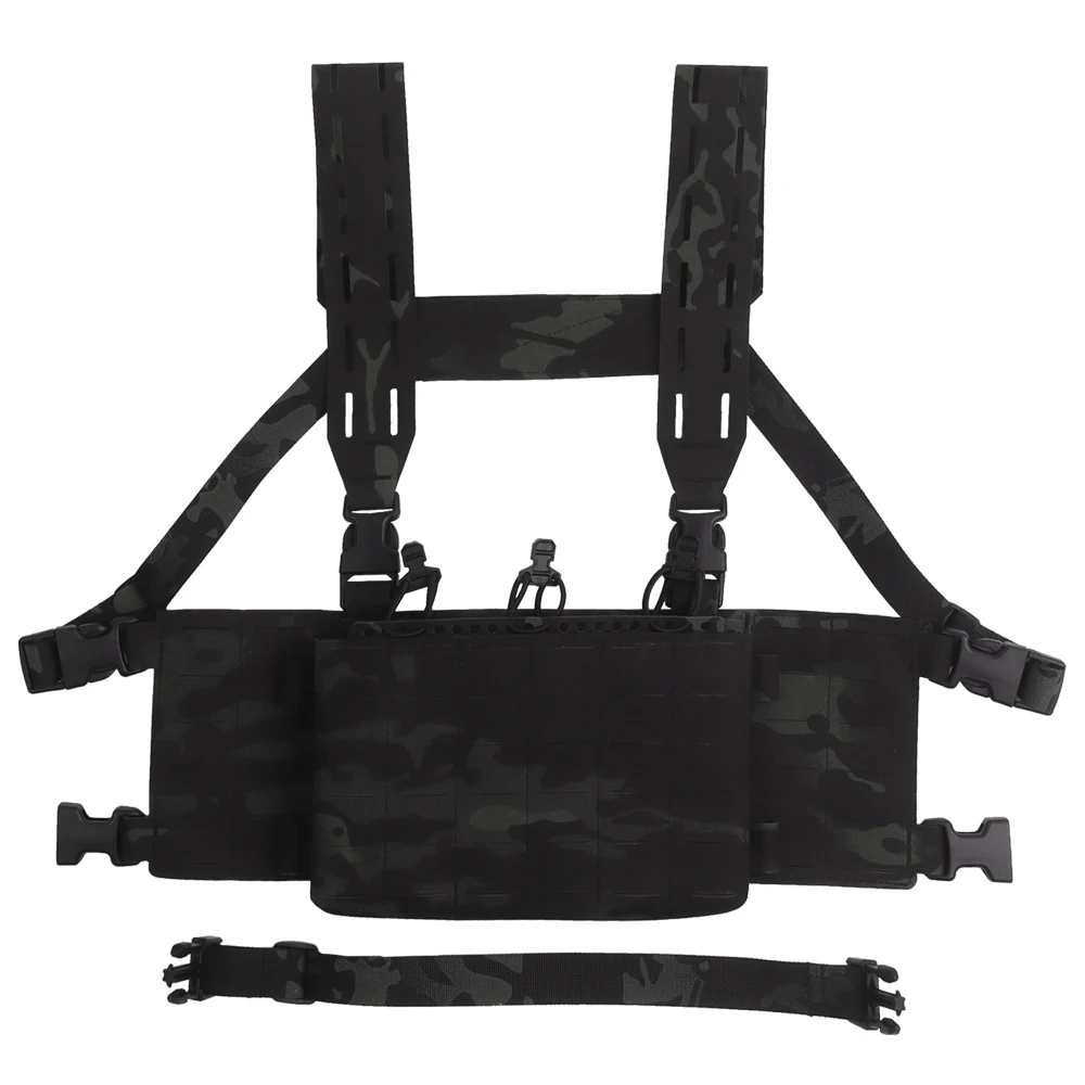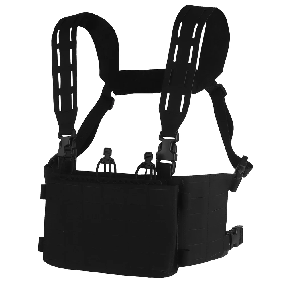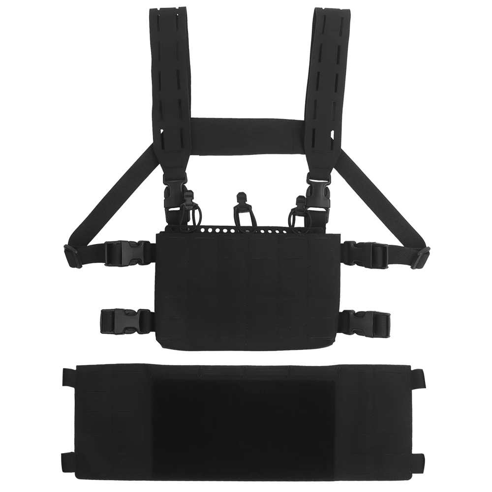 Equipo táctico de pecho, chaleco de entrenamiento modular Airsoft, equipo de camuflaje multifuncional con sistema MOLLE de bolsa triple para cargador 556