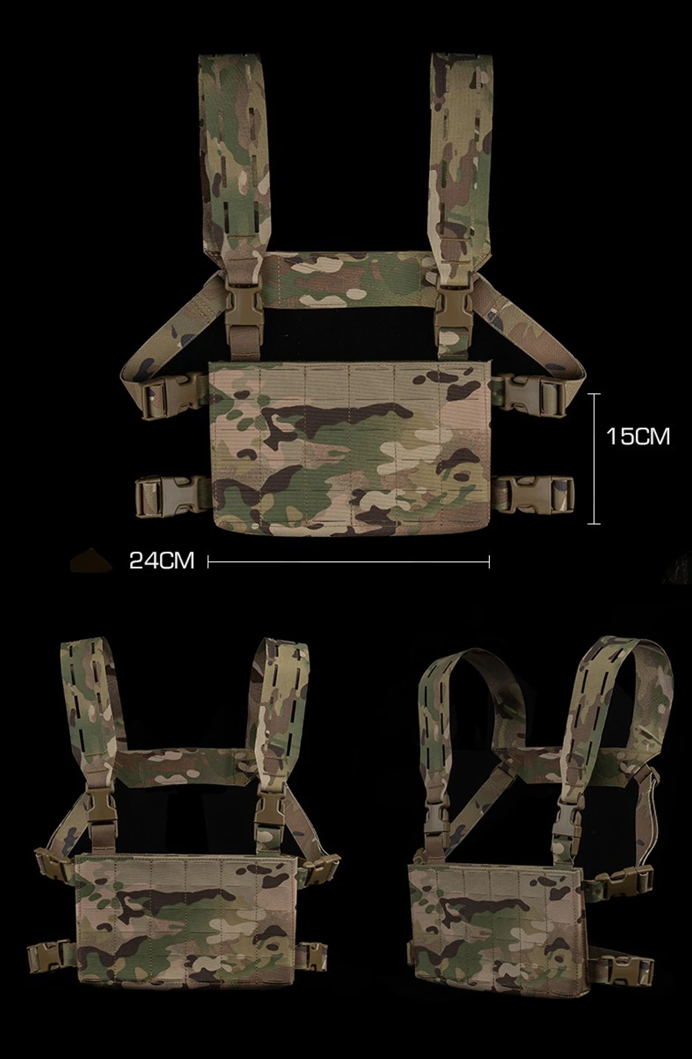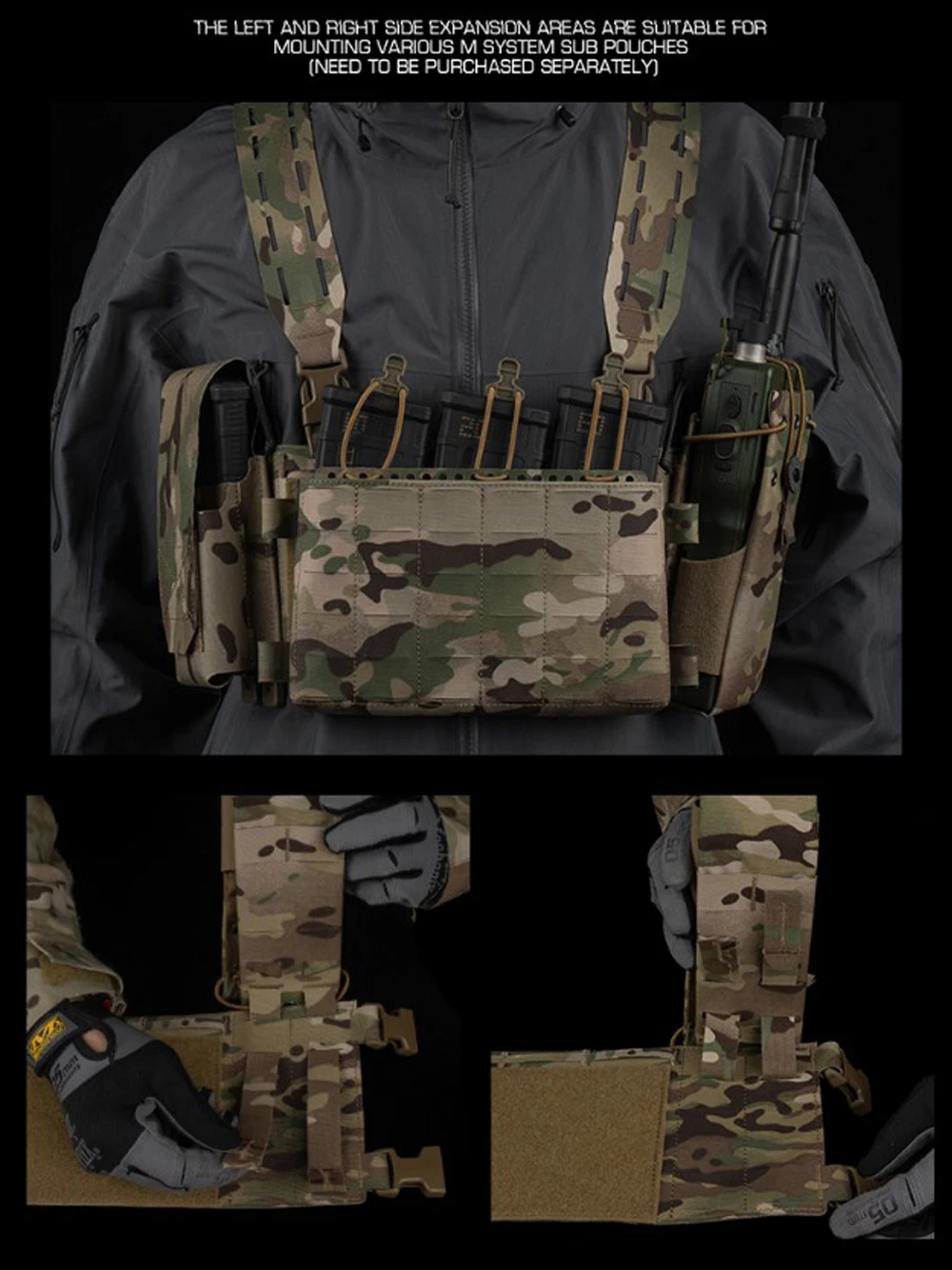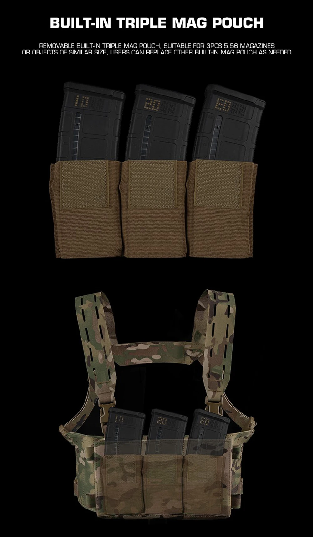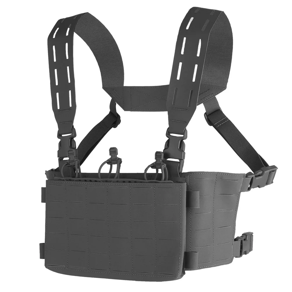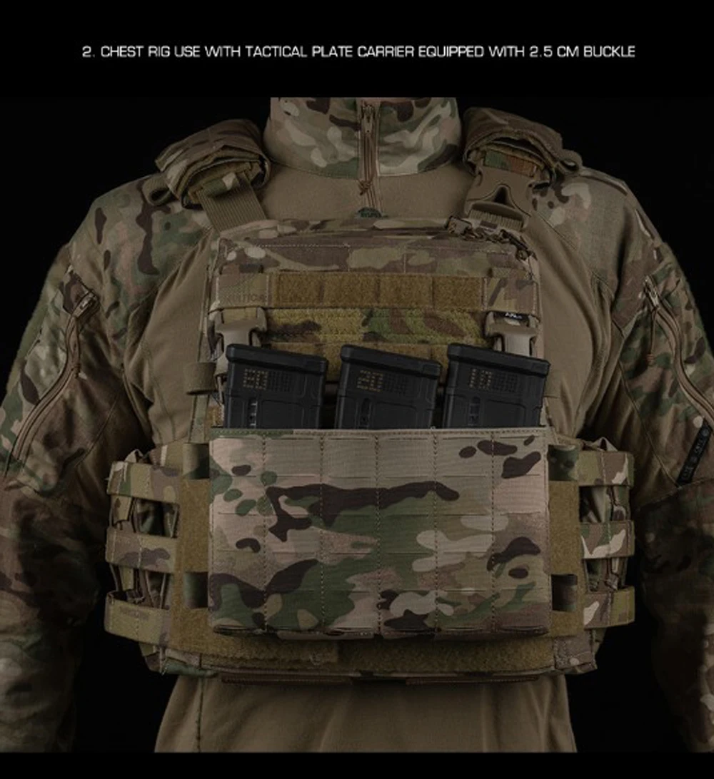 Equipo táctico de pecho, chaleco de entrenamiento modular Airsoft, equipo de camuflaje multifuncional con sistema MOLLE de bolsa triple para cargador 556