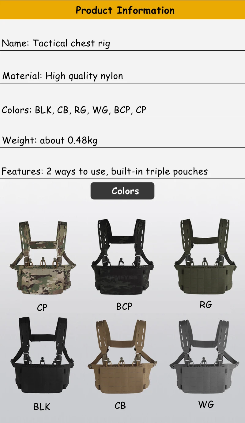 Equipo de pecho modular táctico: sistema MOLLE 3 en 1