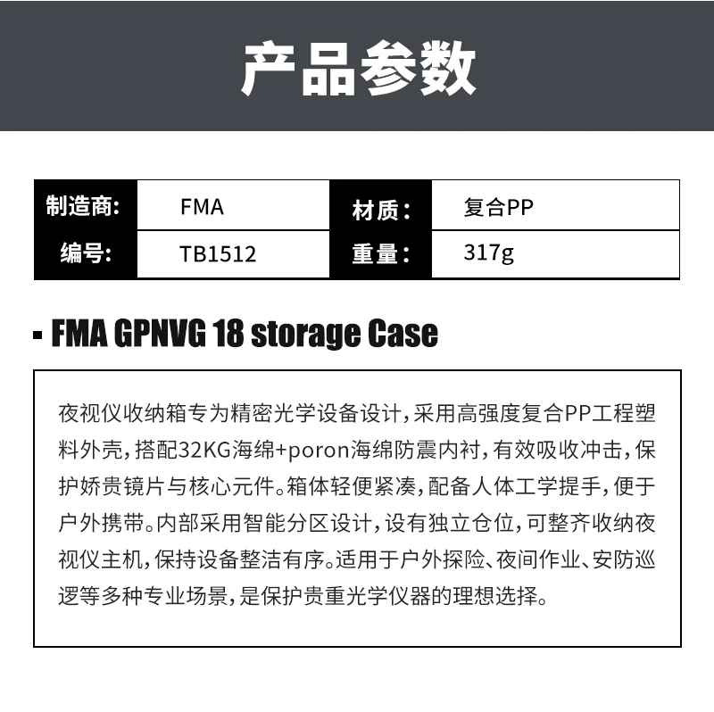 Equipo táctico GPNVG18, caja de almacenamiento para dispositivo de visión nocturna, ligero y portátil, algodón marino, antigolpes, TB1512