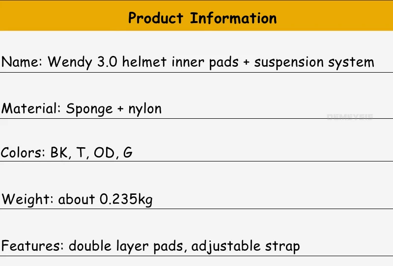●Nombre: Almohadillas interiores para casco Wendy 3.0 + sistema de suspensión