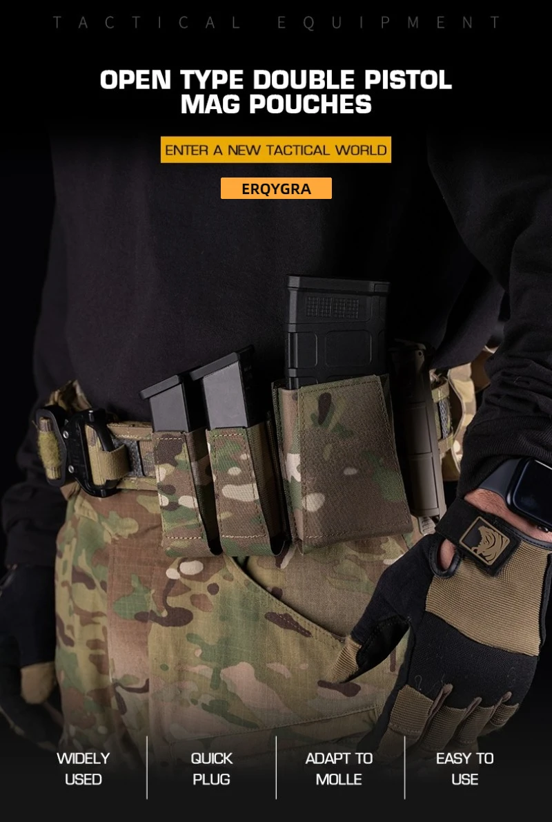 ERQYGRA-bolsas magnéticas de doble pistola, tipo abierto táctico, accesorios de sistema Molle de tiro, juego de guerra CS, linterna, riñonera para caza