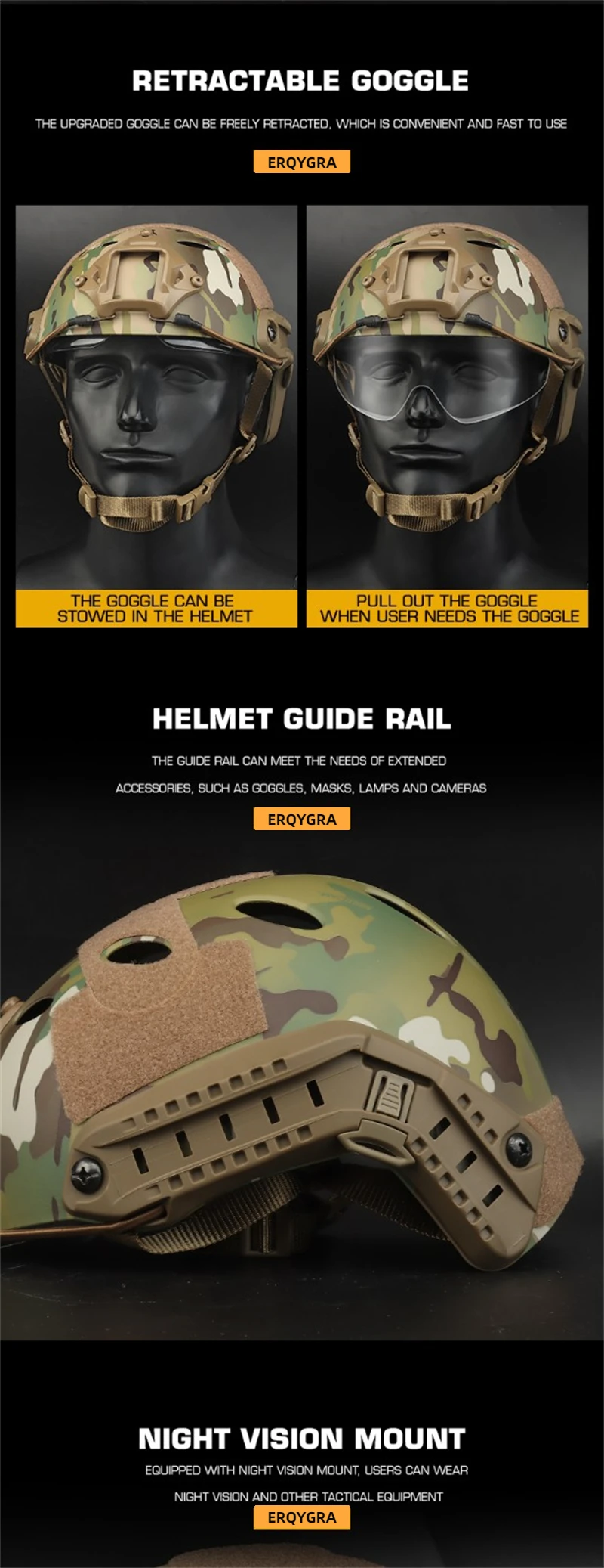 ERQYGRA-casco táctico rápido, gafas, accesorios de tiro Airsoft, equipo de Paintball, protección de caza, equipo de seguridad para deportes al aire libre