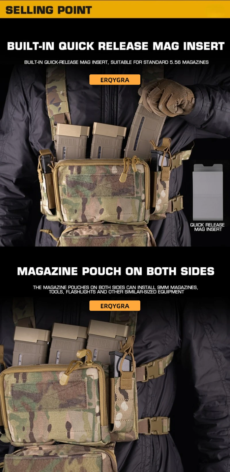 ERQYGRA-Chaleco táctico para caza, bolsa de entrenamiento de combate, protección para tiro al aire libre, accesorios deportivos Airsoft ajustables