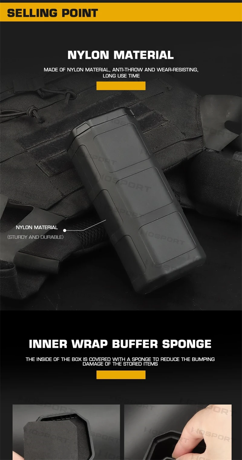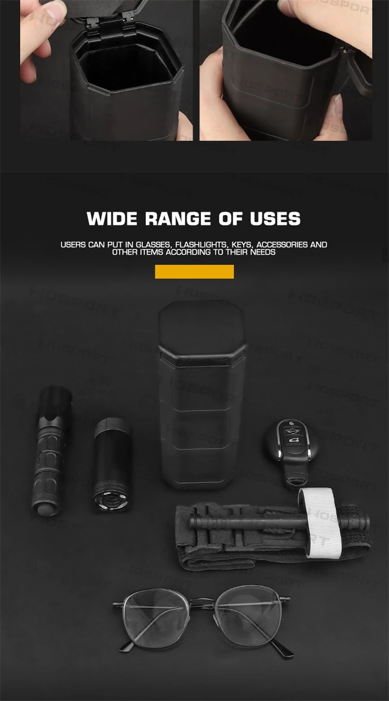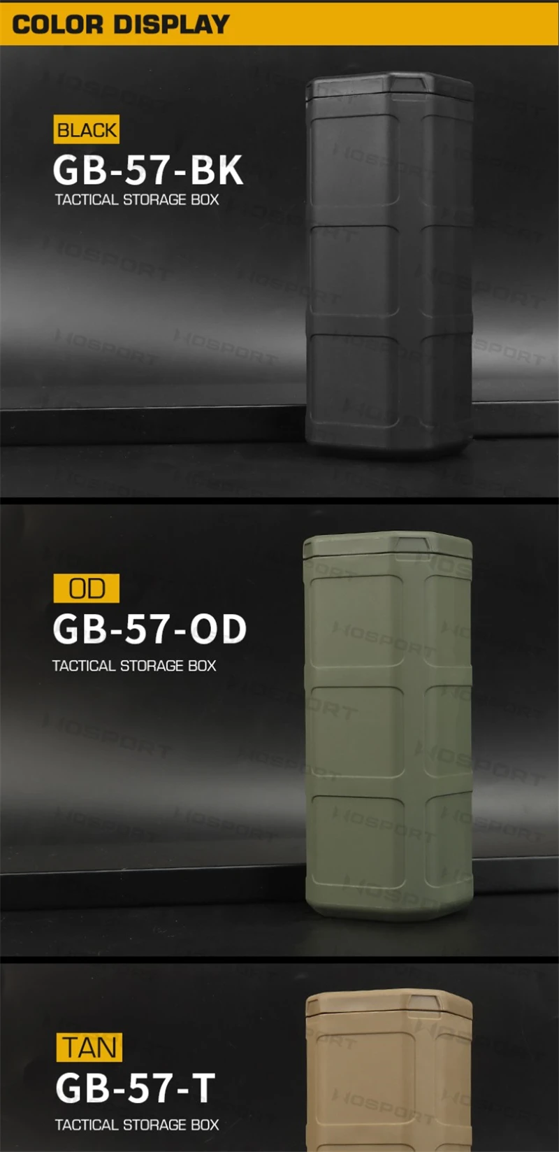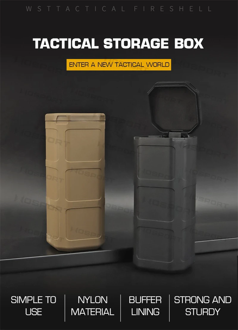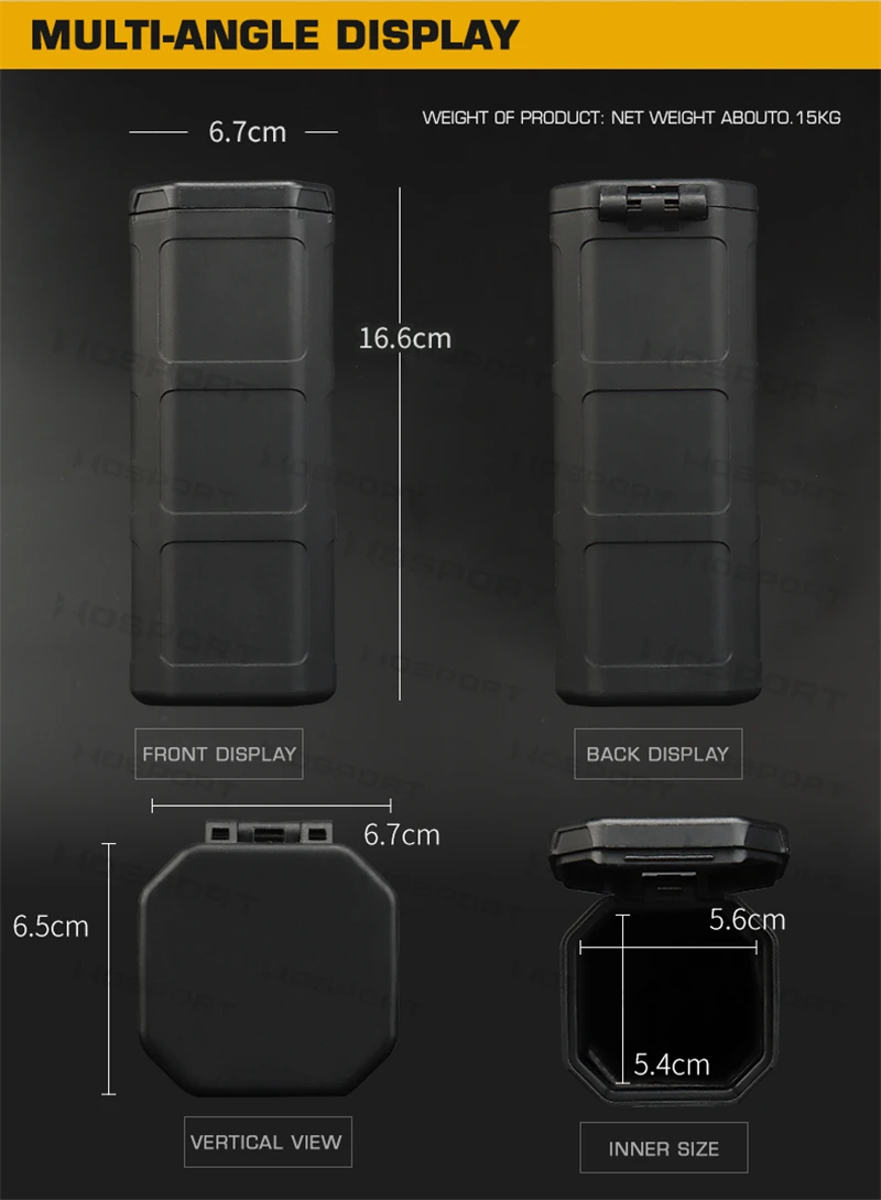 Información del producto: Nombre del producto: caja de almacenamiento táctica Marca del producto: ERQYGRA Tamaño del producto: 6,7*6,5*16,6 cm Peso neto del producto: 0,15 kg. Color del producto: Negro/Tanado/OD/CP/BCP Material principal: nailon Aplicable: caza al aire libre, campo de tiro, competición de equipos, accesorios de cine y televisión.