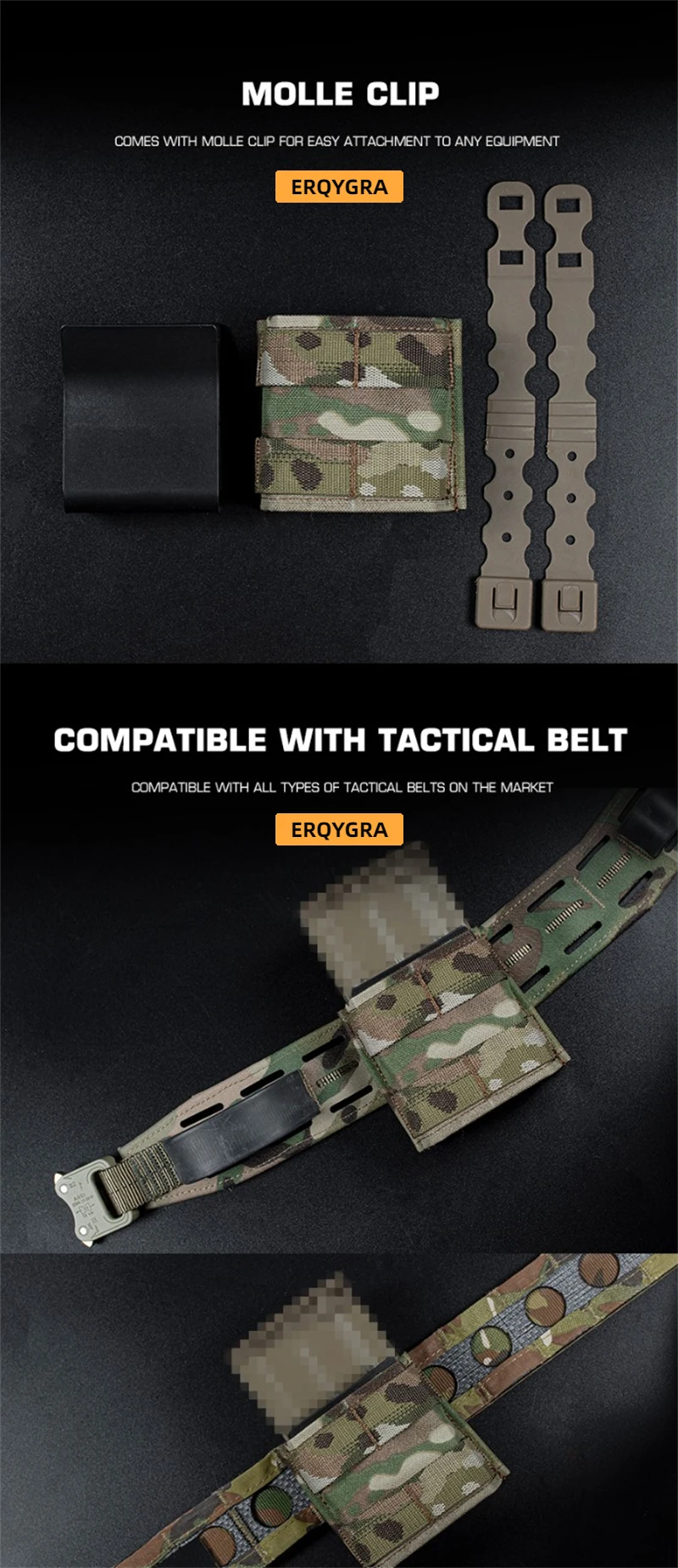 3. El Molle inserto, con su propio inserto Molle, se puede fijar fácilmente en la mayoría de los accesorios, con una variedad de combinaciones, y se puede adaptar a varios cinturones tácticos convencionales en el mercado