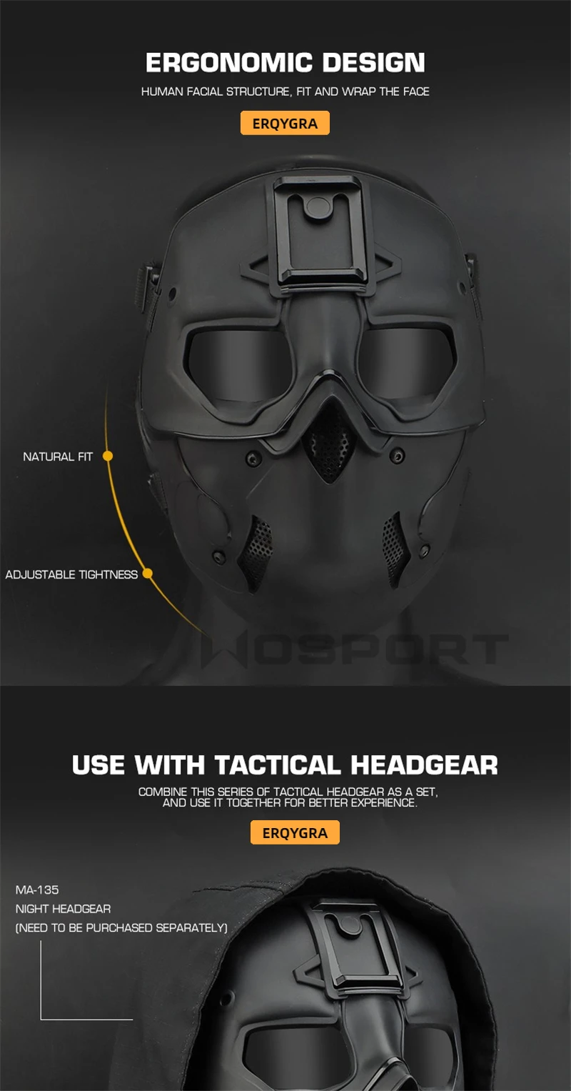 ERQYGRA máscara de cara completa táctica salvaje para Halloween, accesorios de Paintball, equipo de caza de tiro, equipo de deportes al aire libre