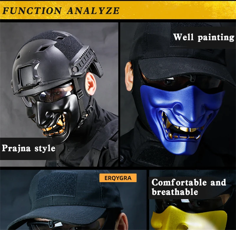 ERQYGRA-Máscara táctica de media cara PRAJNA para fiesta de Halloween para adultos, tiro de Paintball, deportes al aire libre, caza, accesorios de Paintball