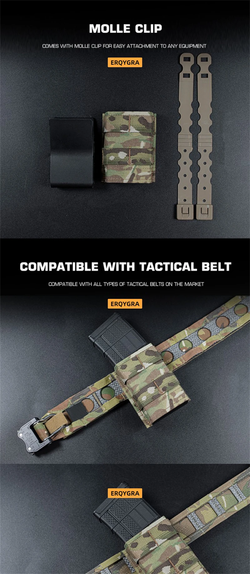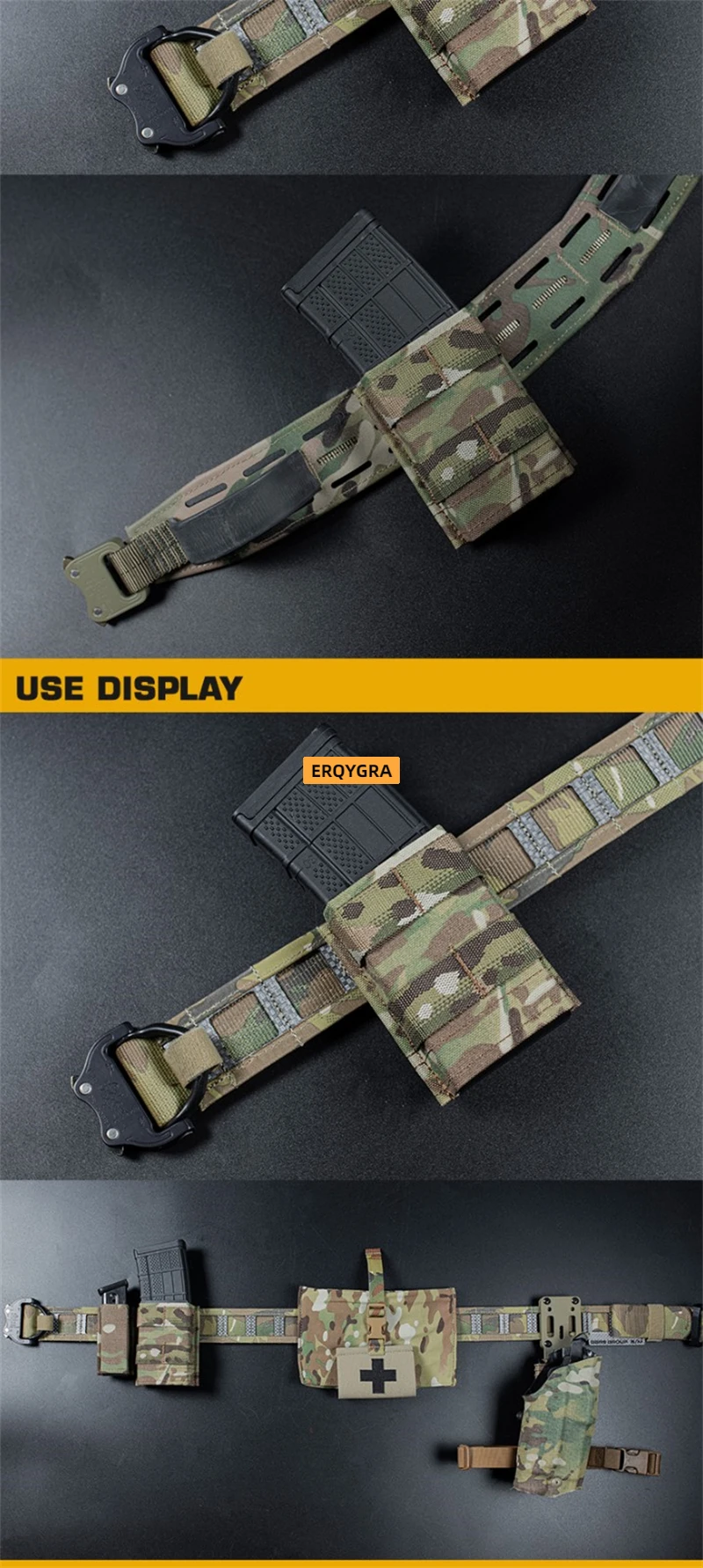 3. El Molle inserto, con su propio inserto Molle, se puede fijar fácilmente en la mayoría de los accesorios, con una variedad de combinaciones, y se puede adaptar a varios cinturones tácticos convencionales en el mercado