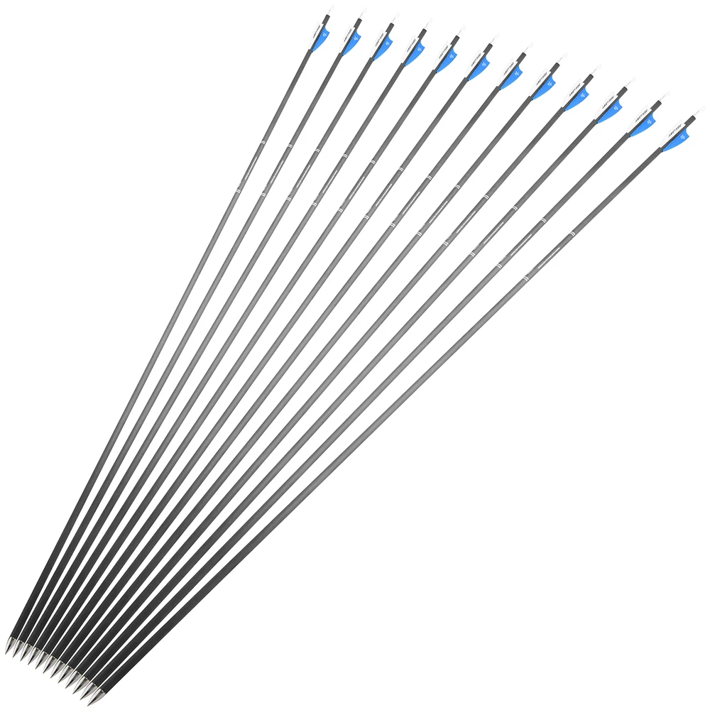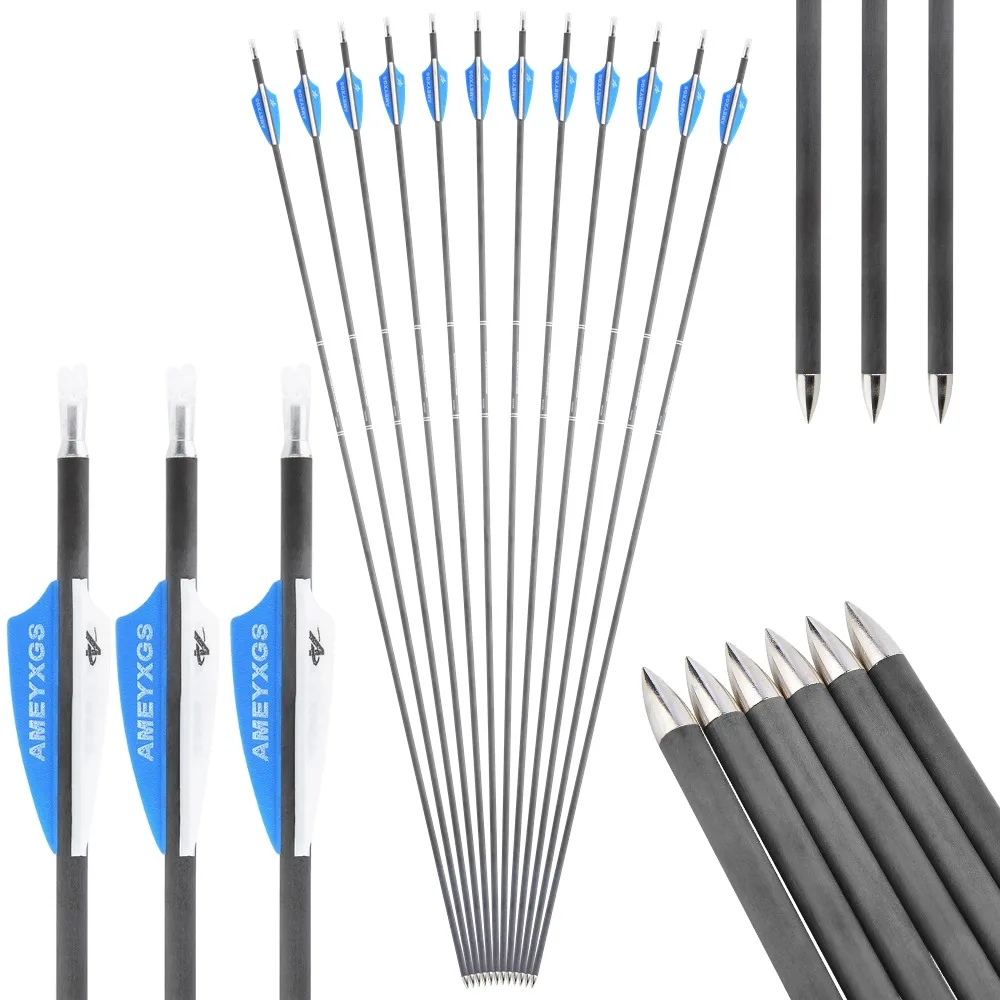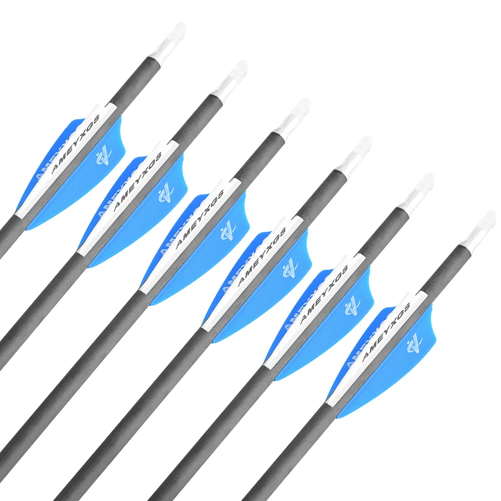 Nombre: 2 flecha de carbono puro con plumas de goma en forma de escudo azul 1 blanca de 2 pulgadas