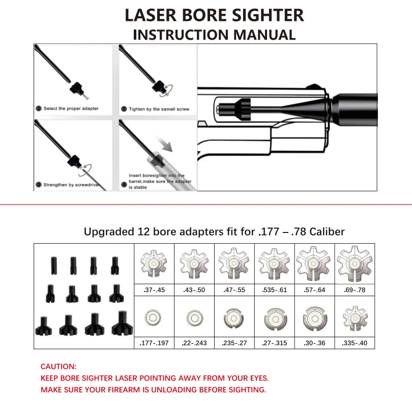 Este kit de seguidor consta de un emisor y series de adaptadores expandibles que cubren diámetros de calibre de 0,177 a 0,78 pulgadas y 12GA.