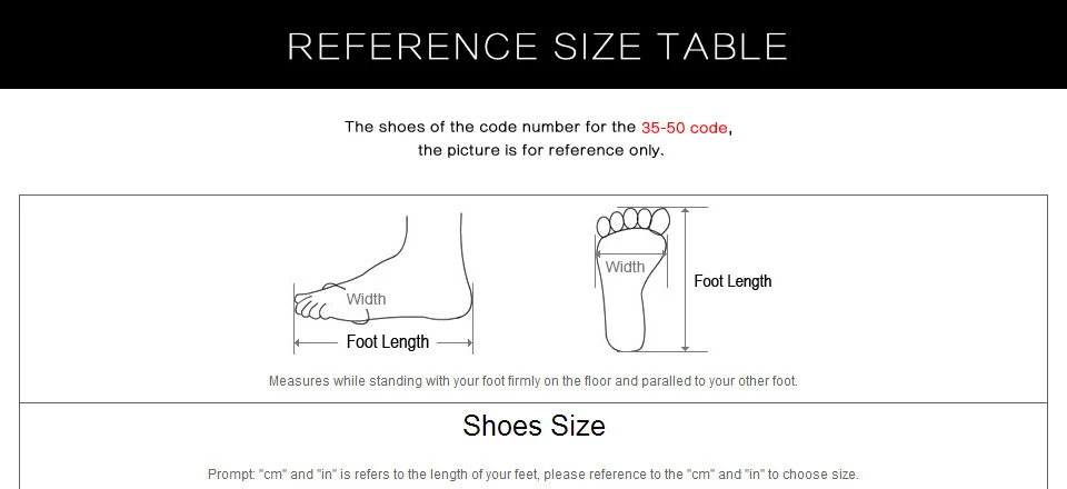 1.The US SIZE or EU SIZE maybe different with your country, before you make the order, you should be careful to measure your feet length (from heel to toe) and then you should pay more attention to our size table. You can find suitable size for you in our size table. Finally, you decide what size you buy.