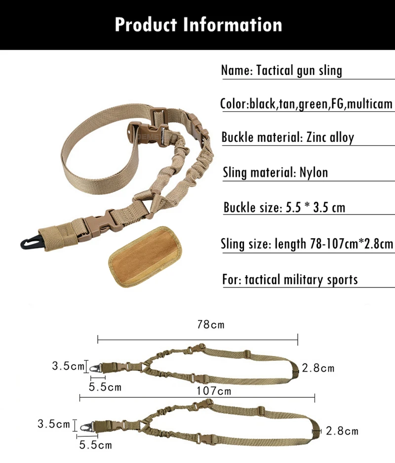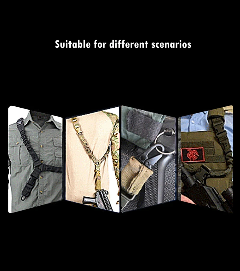 ● La eslinga de un solo punto está hecha de un material de nylon de alta densidad que es duradero y resistente al desgarro.