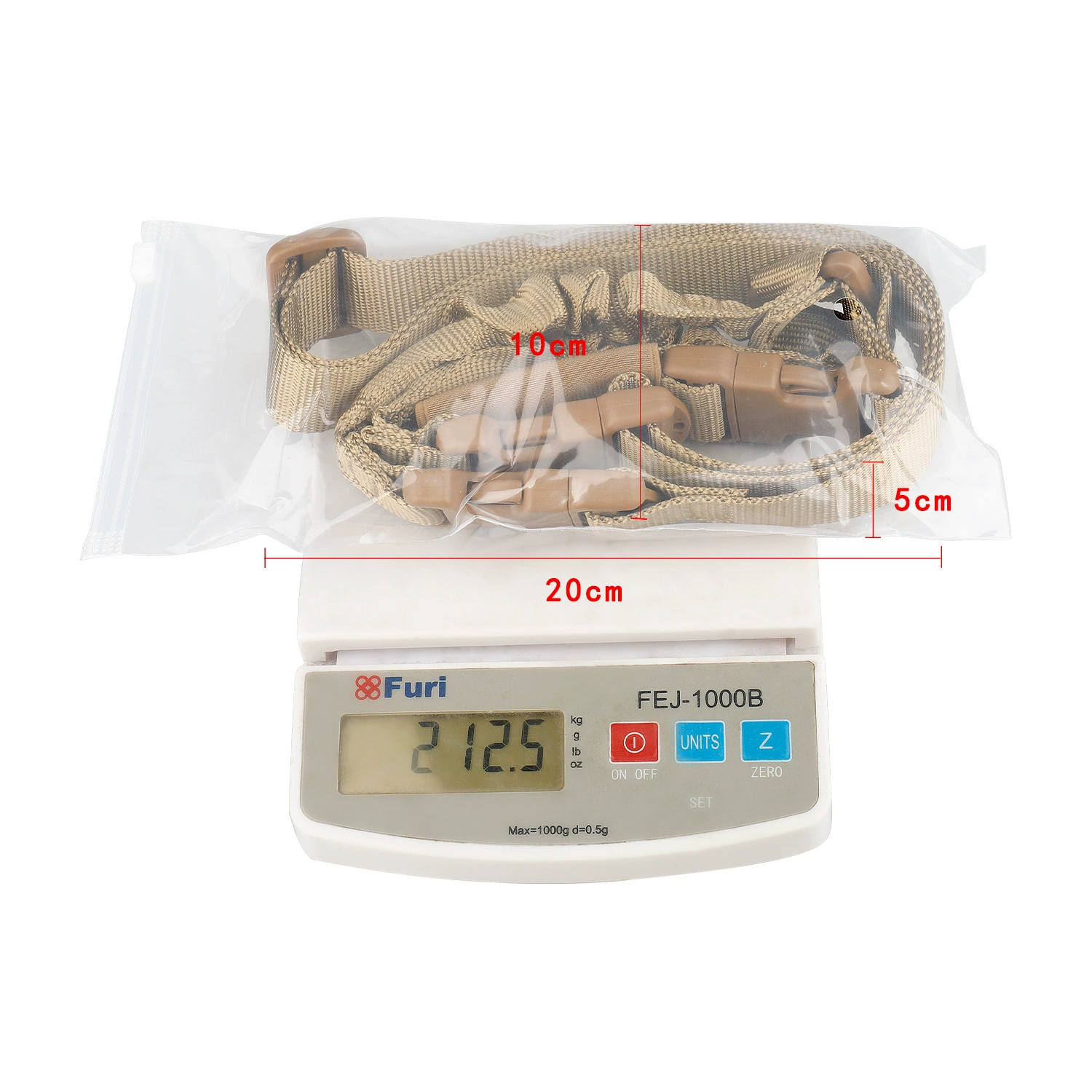 Material: nylon 1000D de alta densidad Ancho: 1,2 pulgadas/32 cm Longitud (sin estirar) : 44 pulgadas/112 cm Longitud completa (después del estiramiento) : 59 pulgadas/150 cm Peso: 220g