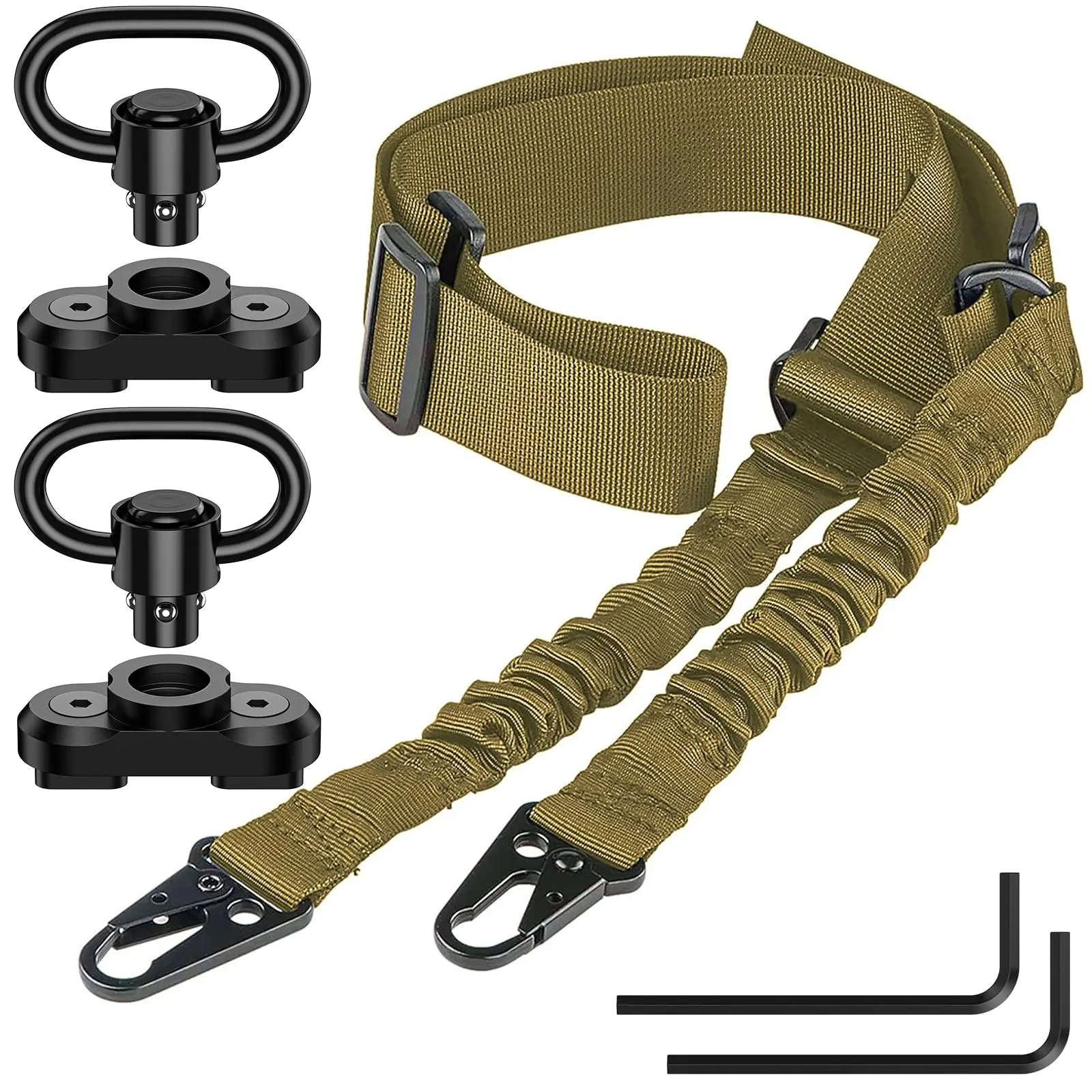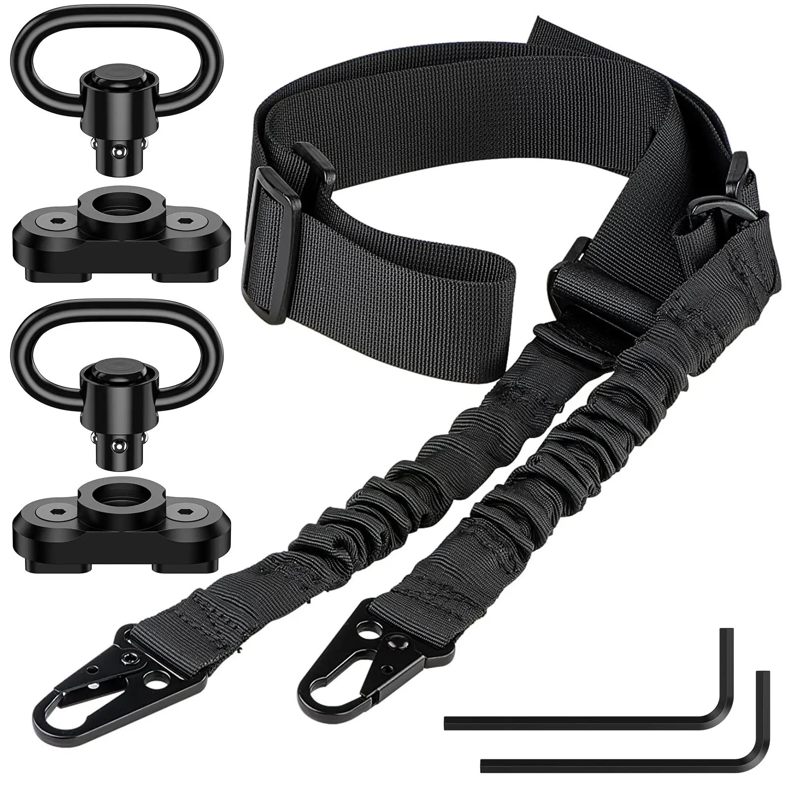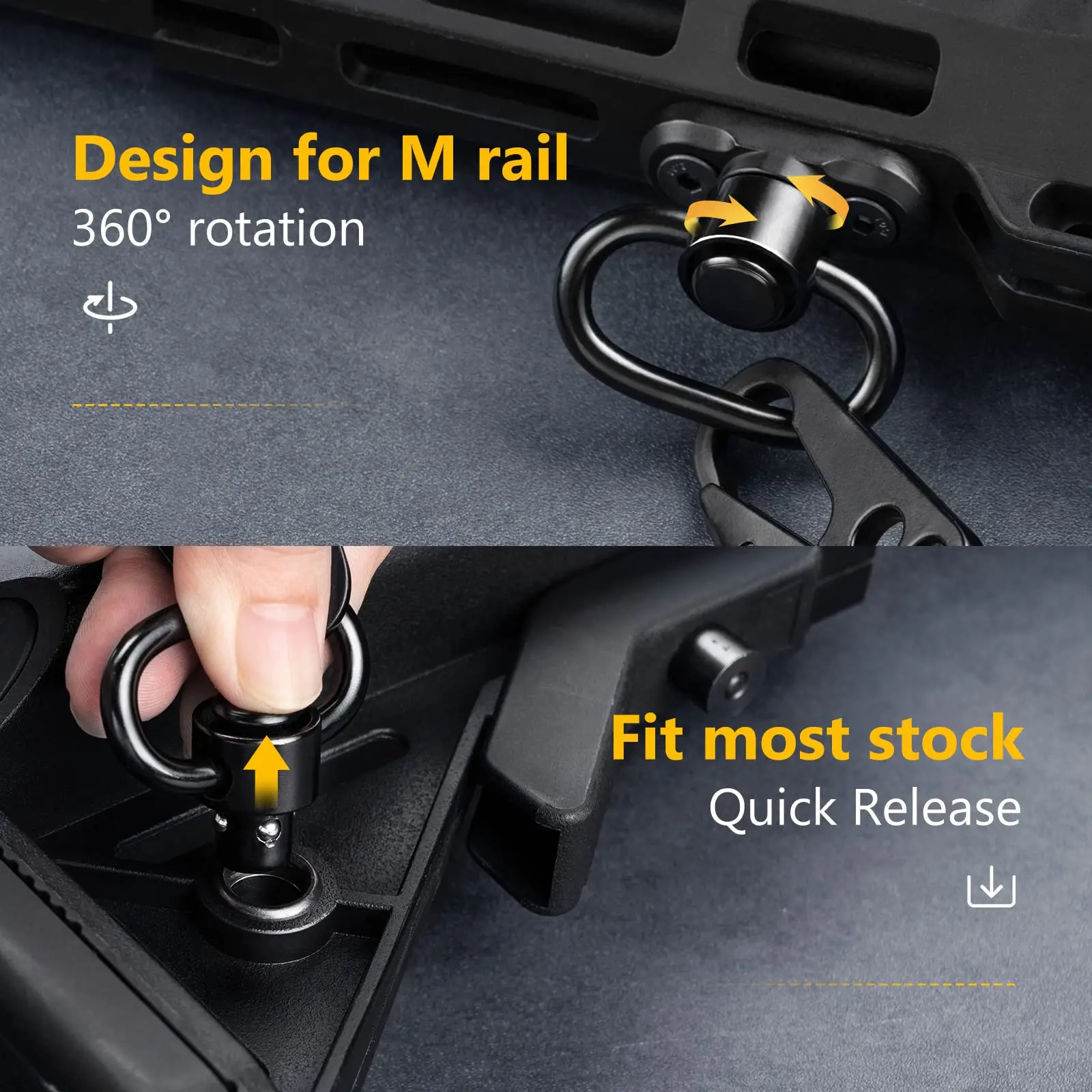 【Sling giratorios】Los giratorios de la correa del arma pueden proporcionar puntos de conexión de eslinga sólidos como una roca. Presentamos una llave hexagonal para que puedas instalar fácilmente la base giratoria en el riel. Los giratorios del tirón y la base giratoria del tirón combinan perfectamente y nunca se caen. Puede presionar el botón de los giratorios del cabestrillo para una fácil instalación y extracción. Los giratorios del cabestrillo se pueden girar 360 grados.