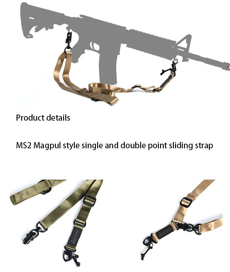 Eslinga de Rifle multimisión táctica MS2 con parche, hebilla de cinturón ajustable de 1/2 puntos, correa de cuerda desmontable, equipo de armas de Metal