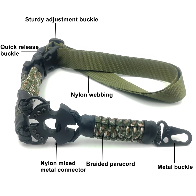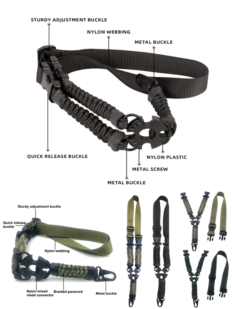 Eslinga de Rifle de dos puntos con ajustador de longitud Eslinga tradicional con gancho de Metal para accesorios de caza táctica al aire libre