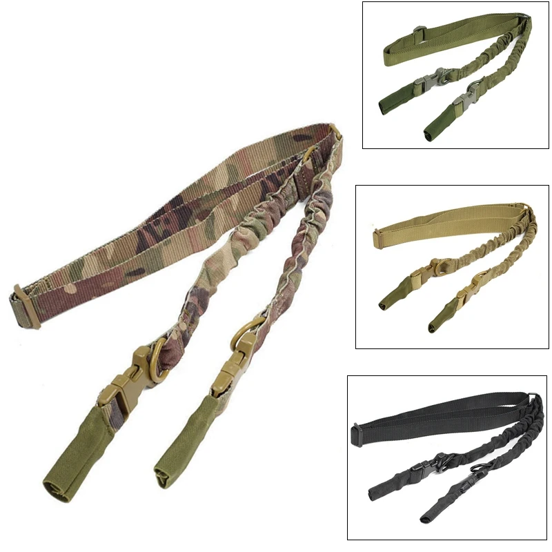Eslinga táctica de doble punto para pistola, correa elástica de poliéster, cinturón multifuncional para adiestramiento al aire libre, cinturón de cuerda para Rifle