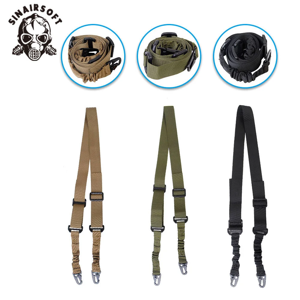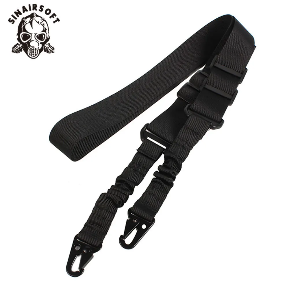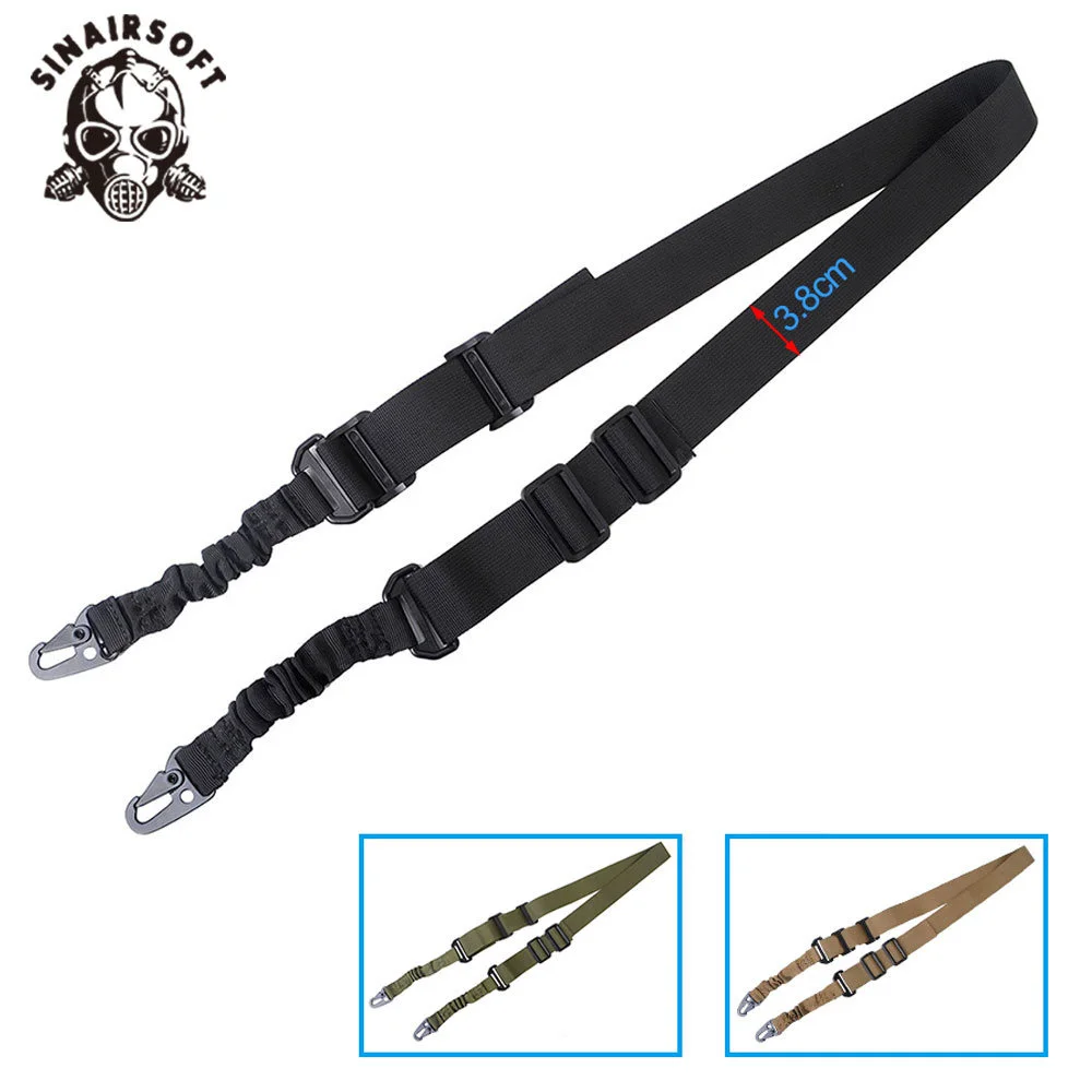 Construido con material de nailon de alta calidad. Eslinga de 2 puntos de diseño especial. Trabajo exquisito con costuras perfectas. Bucles conectados de acero duradero anticorrosión. Hebilla para ajustar la longitud del cabestrillo. Eslinga de caza fácil y perfecta. Una buena opción para sujetar equipos al aire libre.