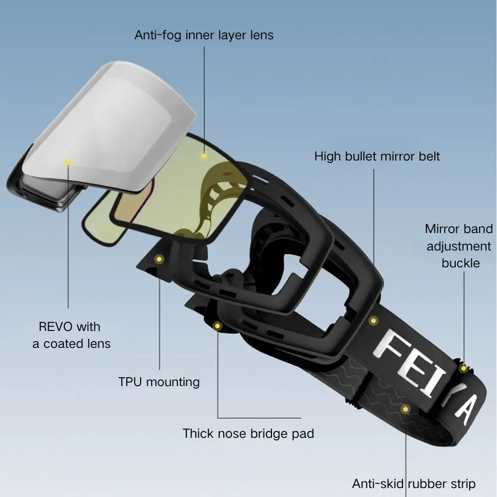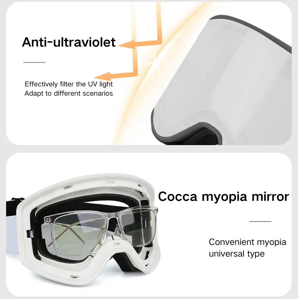 Espejo de esquí para hombre y mujer, lente HD a prueba de explosiones, gran visión, montañismo, esquí, viajes, lente de succión magnética