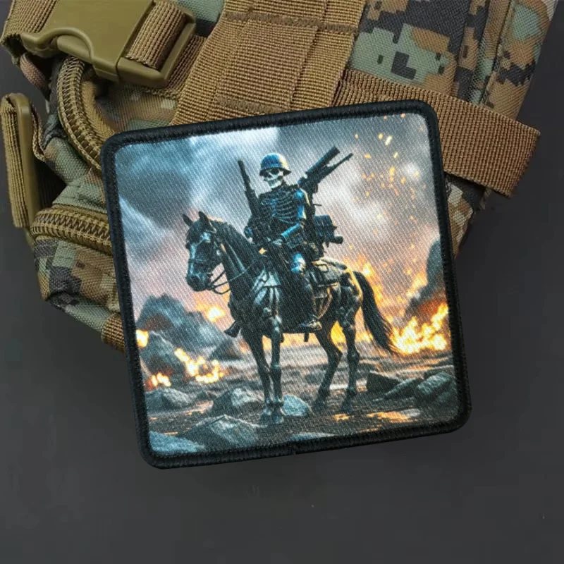 Esqueleto General conducción caballo de guerra insignia de moral táctica parche estampado parches de gancho y bucle brazalete militar ropa mochila pegatina