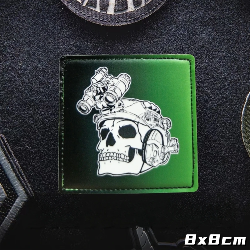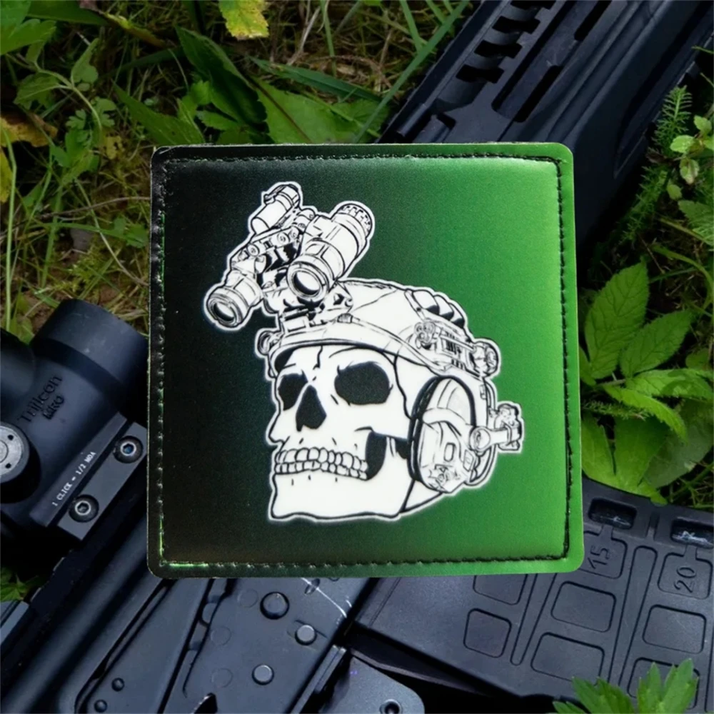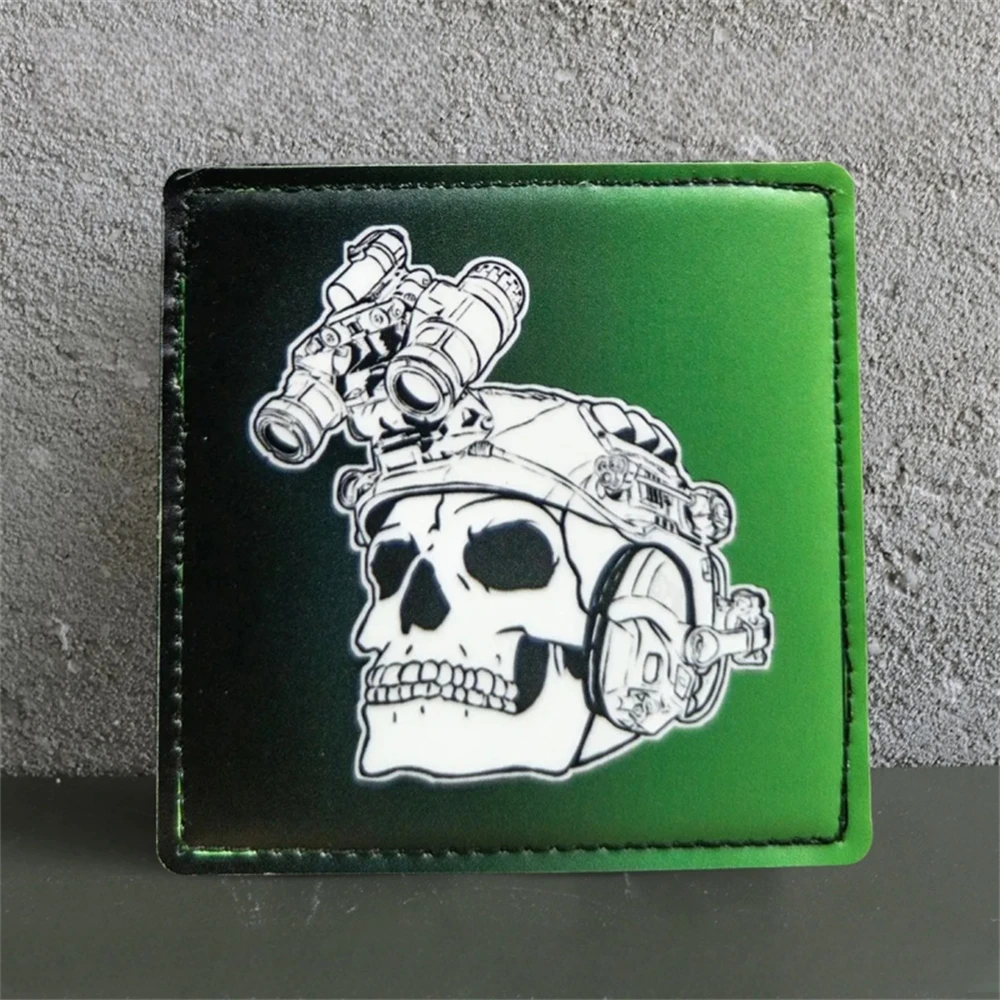Esqueleto con parche impreso NVG, parches de gancho y bucle de moral táctica para ropa, mochila, pegatinas decorativas