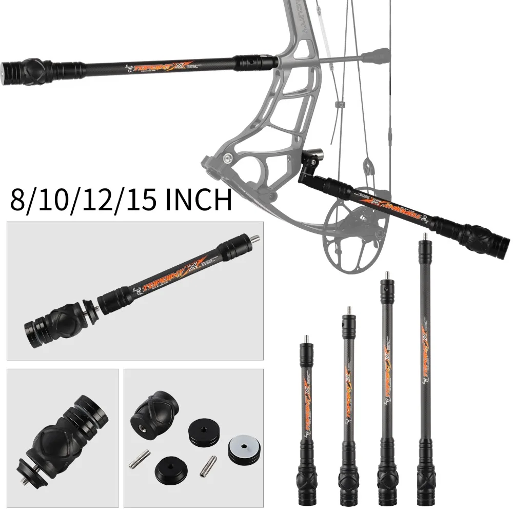 Estabilizador de arco de tiro con arco de 8/10/12/15 pulgadas, aleación de aluminio CNC, amortiguador de carbono 3K, reducción de vibración, arco recurvo compuesto, caza