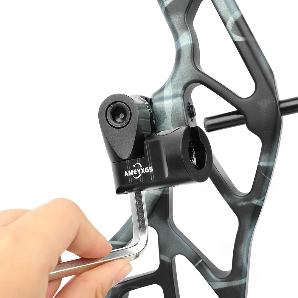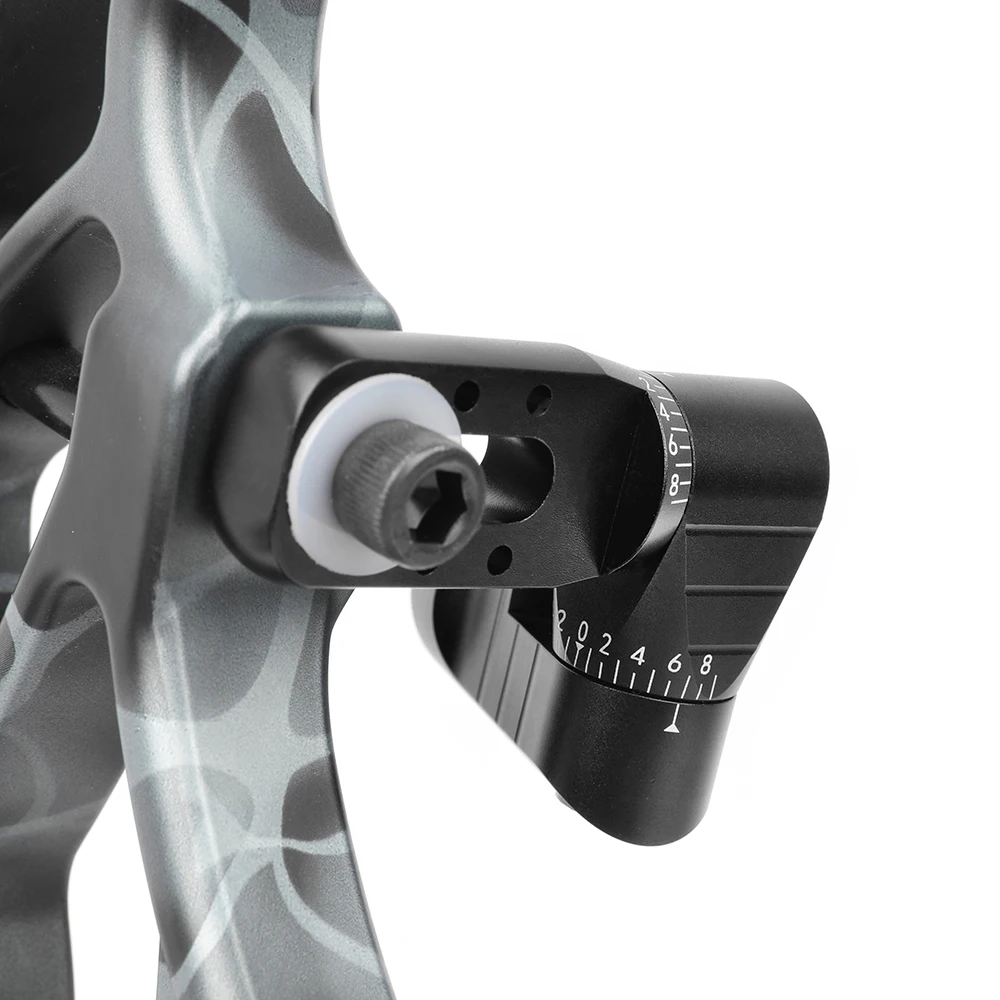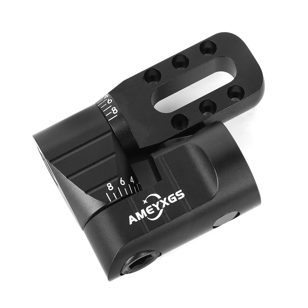 1.Cuenta con un mecanismo de ángulo ajustable con marcas claras y fáciles de leer.Esto le permite ajustar el ángulo con precisión para que coincida con las características de su arco individual y su estilo de disparo personal, logrando un estado óptimo de equilibrio.