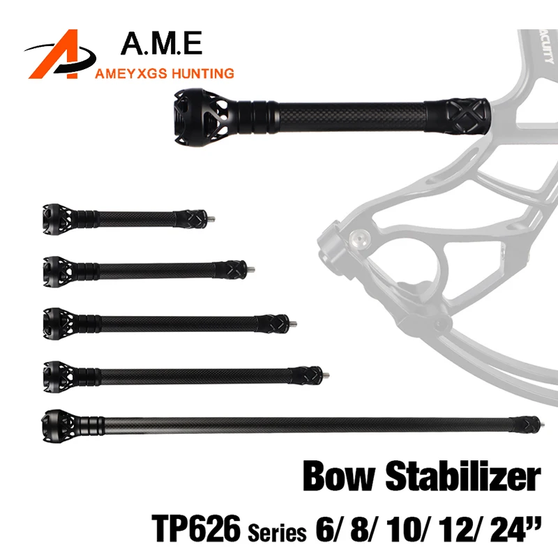 Estabilizador de arco de tiro con arco TP626 fibra de carbono 3K 6/8/10/12/24 pulgadas con contrapeso para arco compuesto Riser caza de golpes