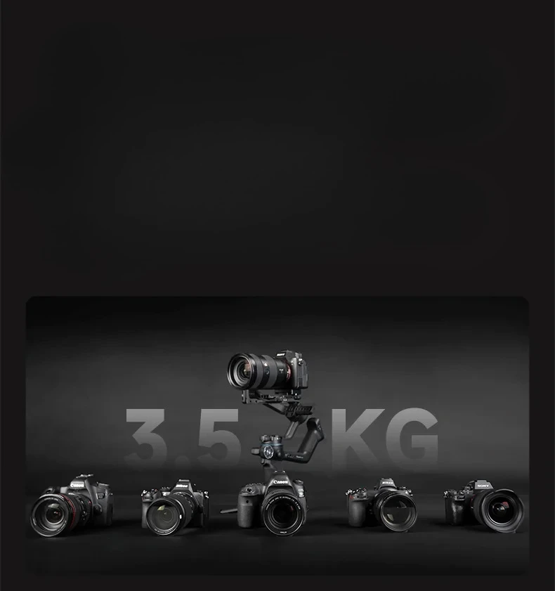 R: Admite cámaras DSLR y sin espejo de fotograma completo de Sony, Canon y Nikon de hasta 3,5 kg, incluidos modelos populares como la serie Sony A7.