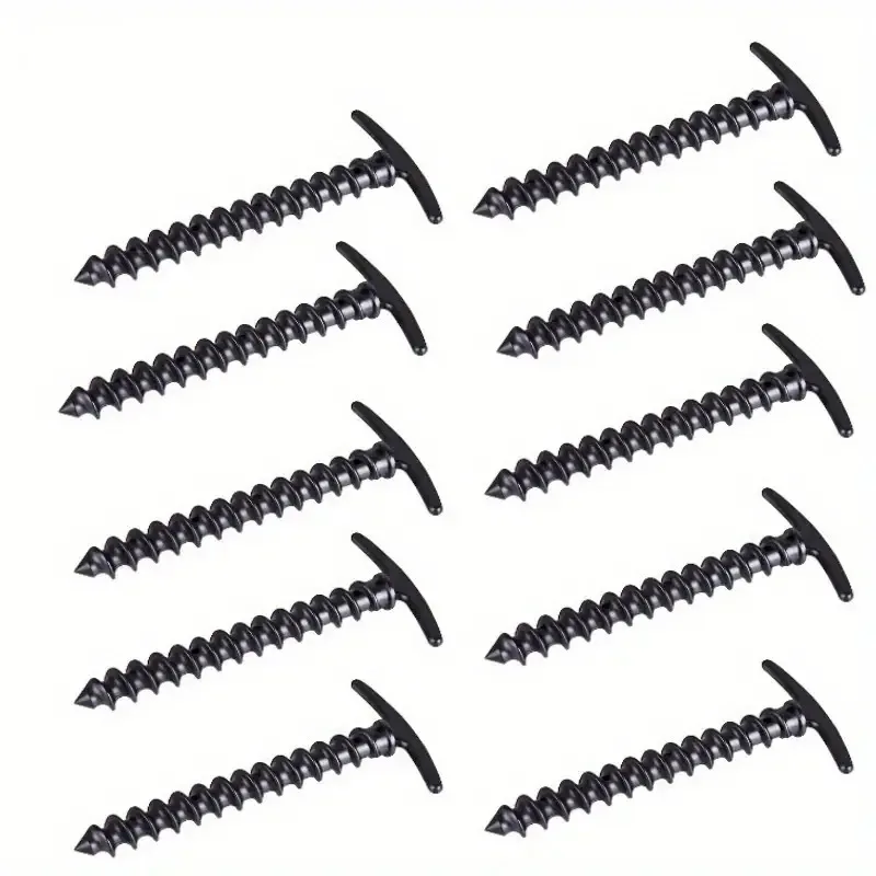 Estacas de anclaje de tornillo, clavijas para tienda de campaña al aire libre, clavos para el suelo, estacas para tienda de senderismo, pines, accesorios para tienda a prueba de viento, 10 Uds.