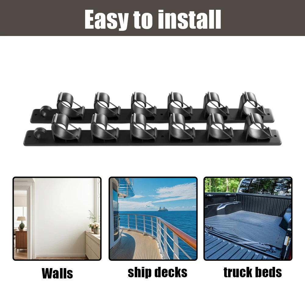 1.Diseño de 6 posiciones: puede almacenar hasta 6 cañas de pescar al mismo tiempo, lo cual es muy adecuado para los entusiastas de la pesca que tienen múltiples tipos de cañas de pescar y utilizan de manera efectiva un espacio limitado.