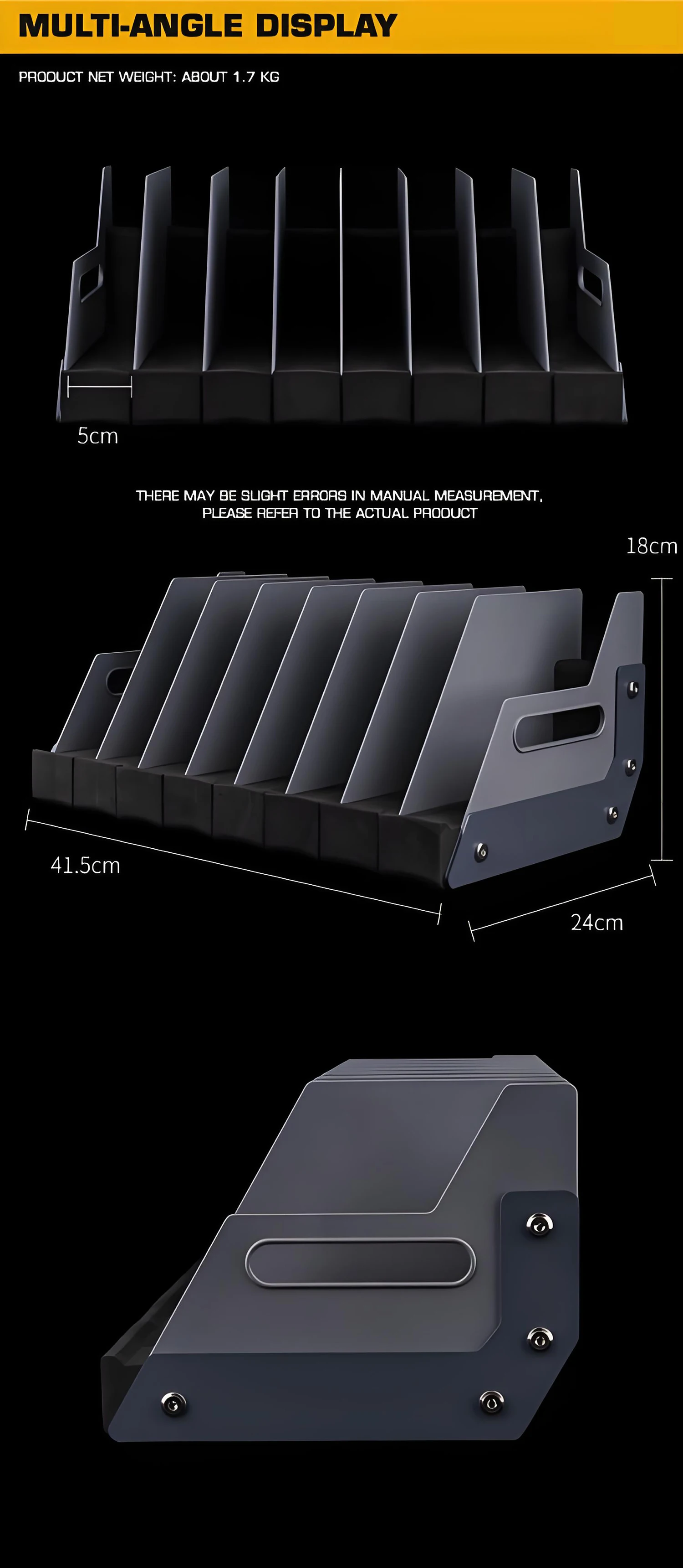 Mejore la gestión de su equipo táctico con el estante de almacenamiento táctico de 4 ranuras/8 ranuras, una solución de nivel profesional diseñada para brindar precisión, portabilidad y protección.Con ocho ranuras generosamente espaciadas, este estante almacena de forma segura pistolas de juguete, revólveres y equipos similares con su suave fondo de EVA para evitar daños por colisión.Las particiones laterales reforzadas y las manijas integradas permiten una organización y movilidad sin esfuerzo, mientras que su diseño compacto se adapta perfectamente a instalaciones de entrenamiento, campos de airsoft o colecciones privadas.