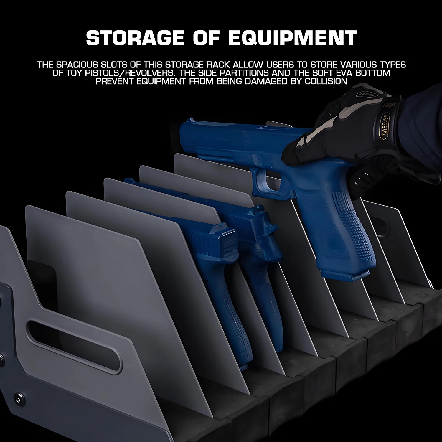 Mejore la gestión de su equipo táctico con el estante de almacenamiento táctico de 4 ranuras/8 ranuras, una solución de nivel profesional diseñada para brindar precisión, portabilidad y protección.Con ocho ranuras generosamente espaciadas, este estante almacena de forma segura pistolas de juguete, revólveres y equipos similares con su suave fondo de EVA para evitar daños por colisión.Las particiones laterales reforzadas y las manijas integradas permiten una organización y movilidad sin esfuerzo, mientras que su diseño compacto se adapta perfectamente a instalaciones de entrenamiento, campos de airsoft o colecciones privadas.