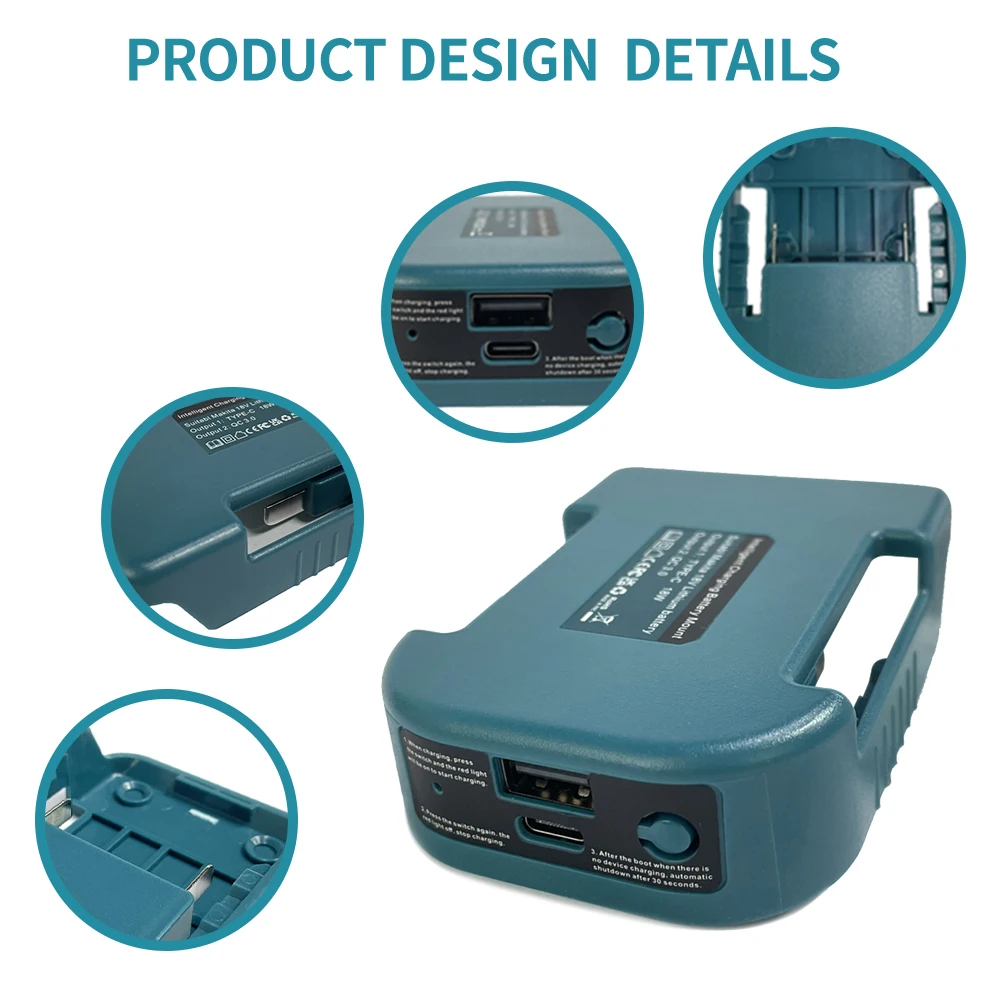 Adaptador USB portátil y tipo C de 18 W para Makita de 18 V