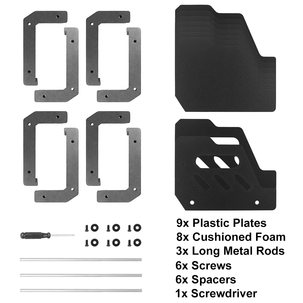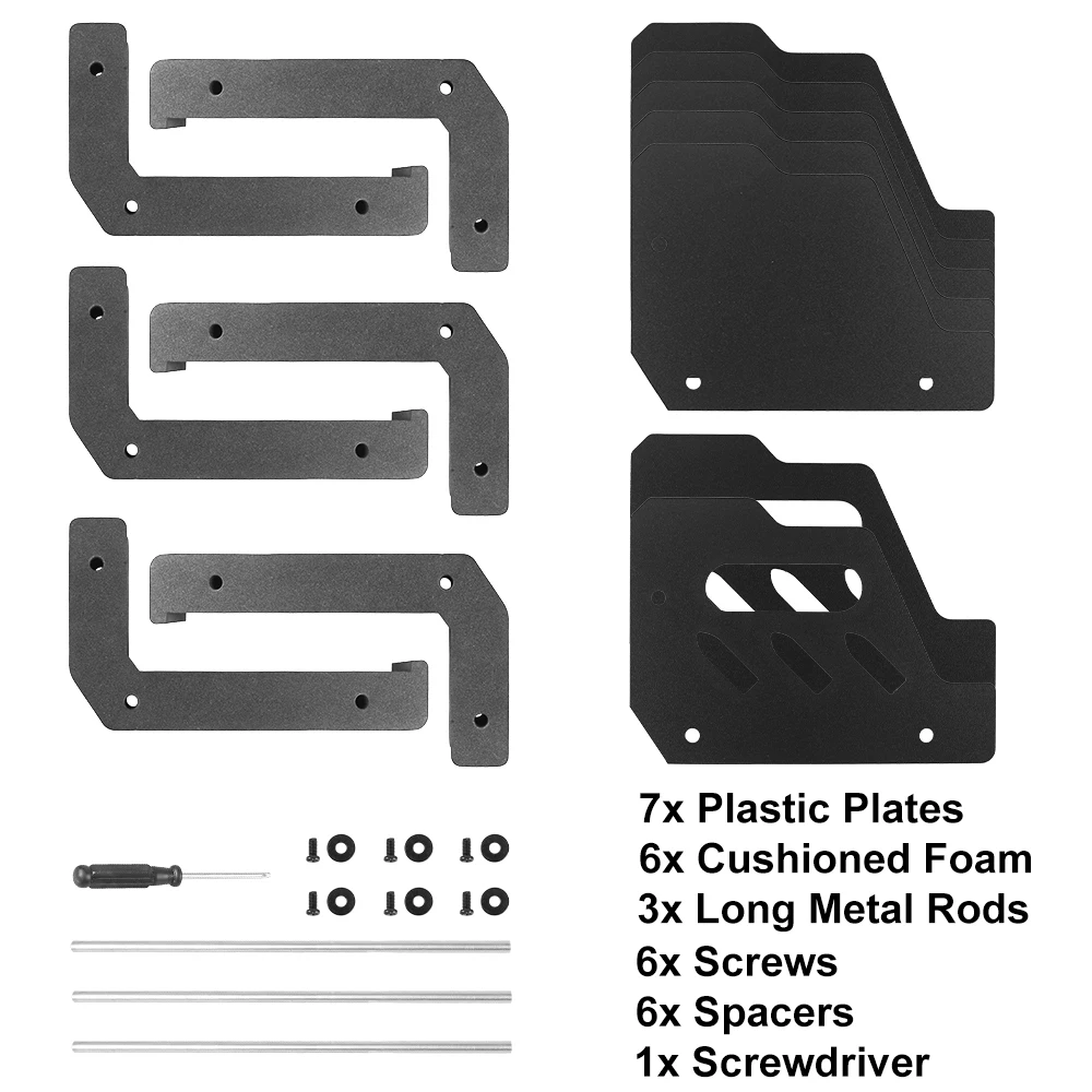 A diferencia de otros soportes para pistolas instalados con cinta de doble cara, nuestro soporte para pistolas tiene 3 varillas metálicas largas y 7 tableros de polímero livianos, lo que puede hacer que la estructura de todo el soporte para pistolas sea más estable y hacer que el montaje sea más conveniente.