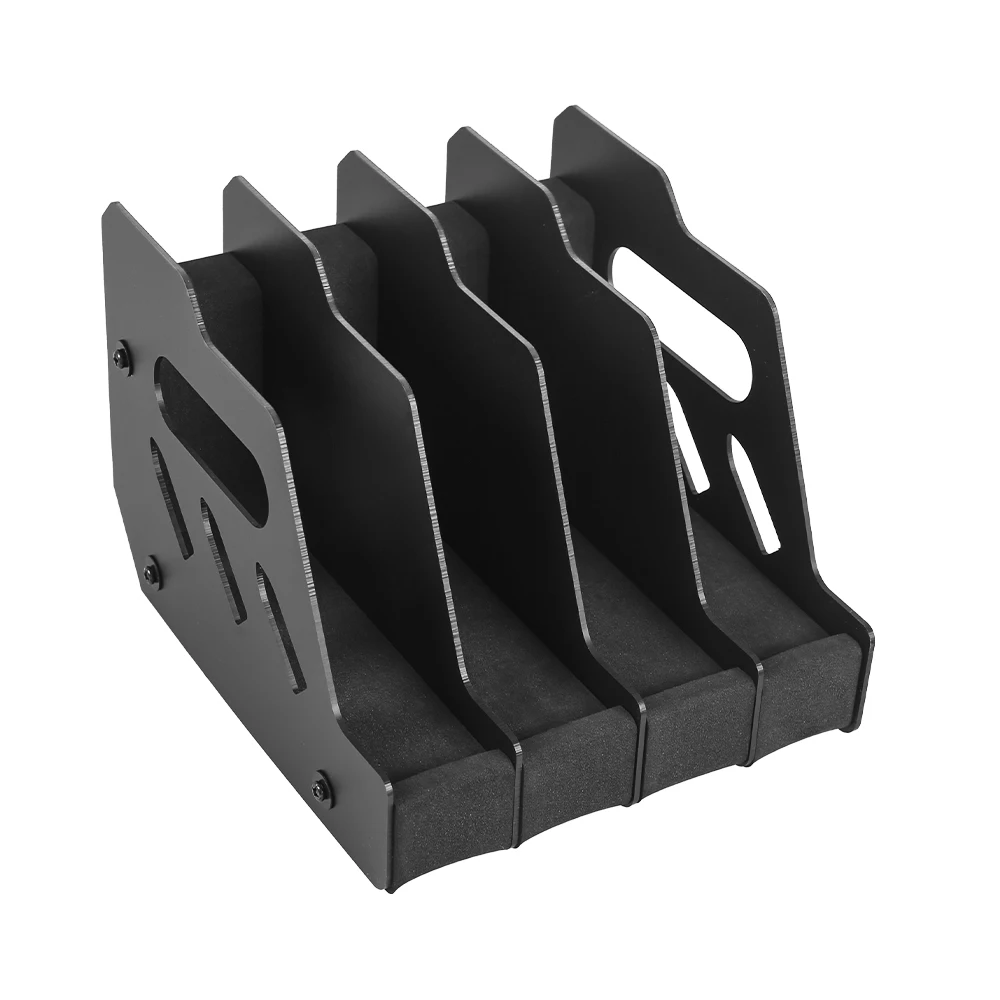 Cada ranura para pistola tiene 1,5” de ancho, la mayoría de las pistolas grandes con accesorios encajarán en este bastidor sin ningún problema.Al mismo tiempo, el tablero de polímero liviano y resistente tiene una mejor capacidad de soporte, por lo que no tiene que preocuparse de que el marco de la pistola se deshaga cuando está lleno.