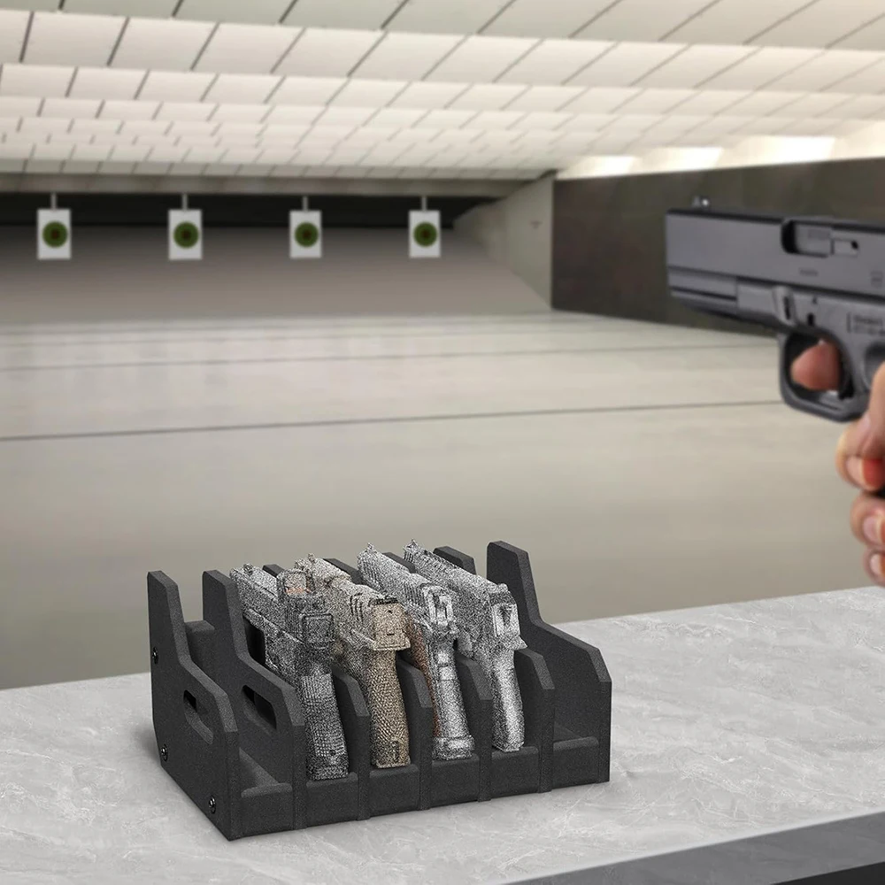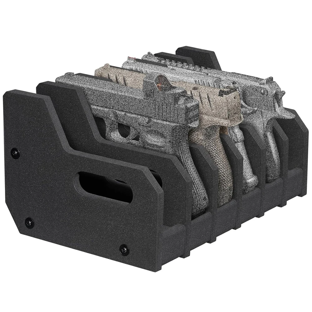 El soporte para armas con ranuras separadas de espuma suave evita rayar sus pistolas, lo que le permite guardar sus armas de fuego de forma ordenada.