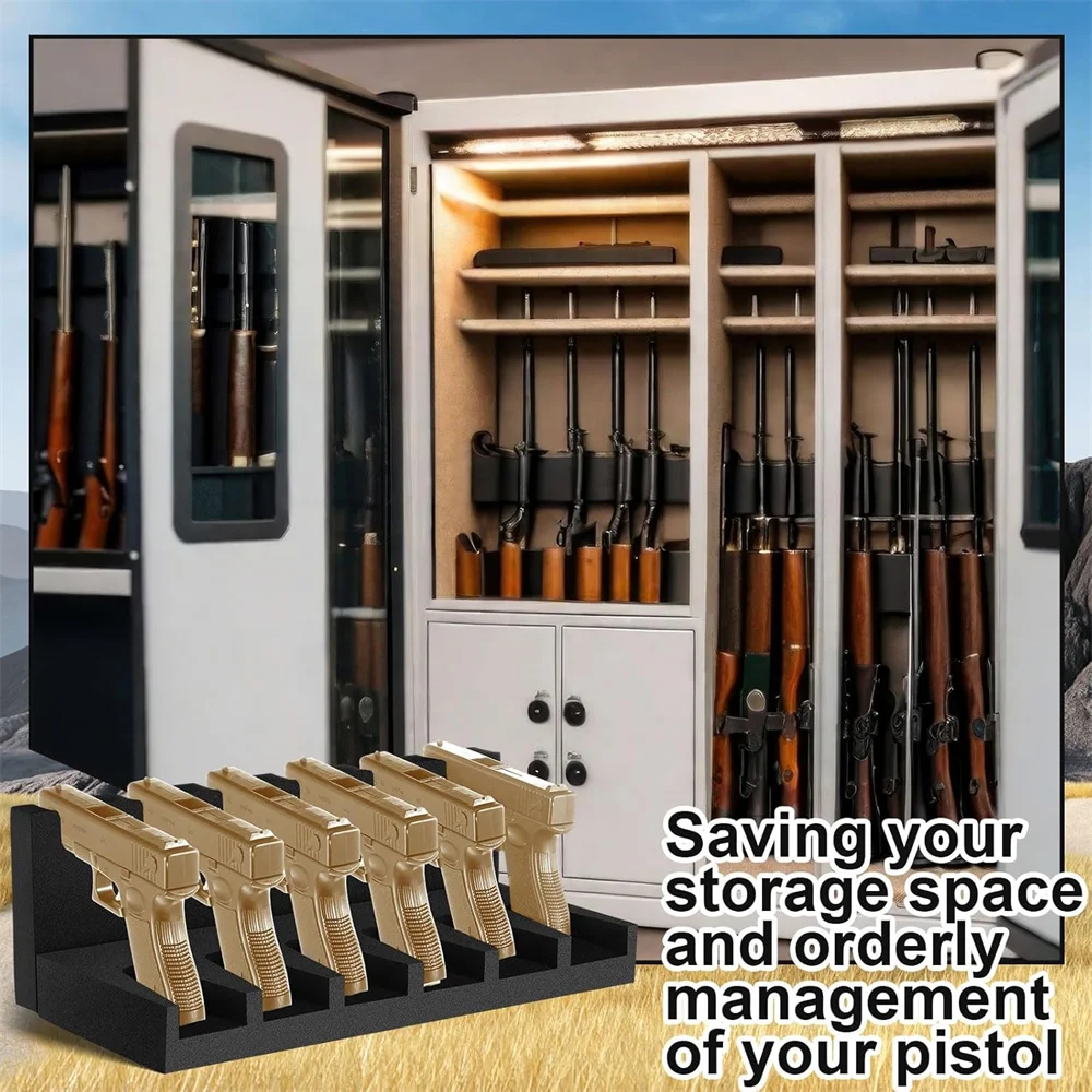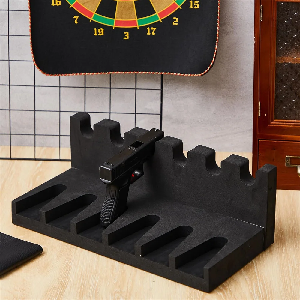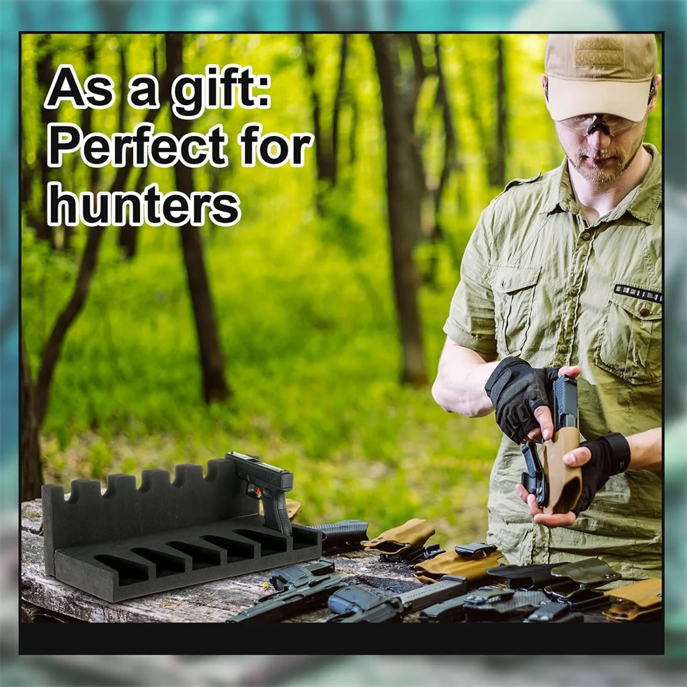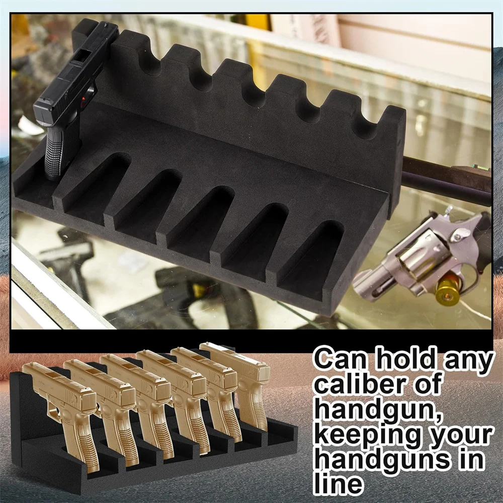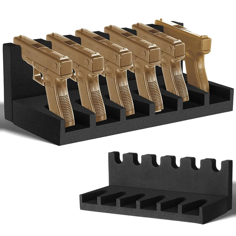 Estante para pistola con 6 ranuras, soporte para pistola de espuma suave para pistola, gabinete seguro, almacenamiento, soporte para pistola, organizador, accesorios de caza