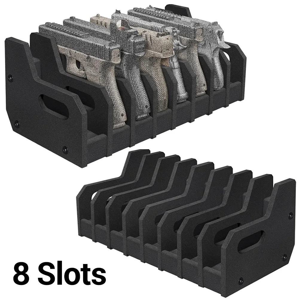 El soporte para armas con ranuras separadas de espuma suave evita rayar sus pistolas, lo que le permite guardar sus armas de fuego de forma ordenada.