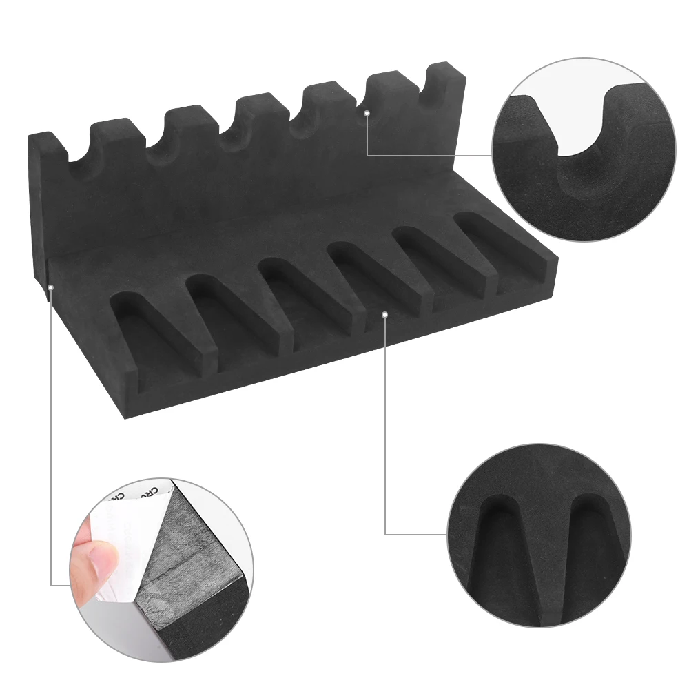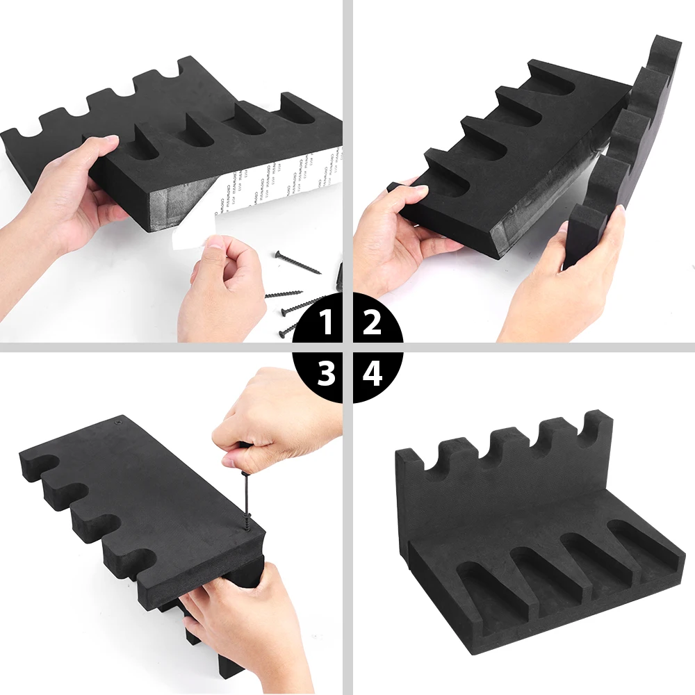La almohadilla de espuma en la parte posterior del soporte para pistolas tiene adhesivo para asegurar mejor su posición.Además, está equipado con tres clavos roscados para refuerzo, asegurando la estabilidad y robustez del porta armas para un mejor almacenamiento.El proceso de instalación también es relativamente sencillo.