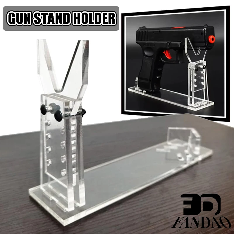Estante de pistola de exhibición ajustable, soporte de pistola transparente para pistola de mano, estante de acrílico portátil para almacenamiento seguro de pistola oculto
