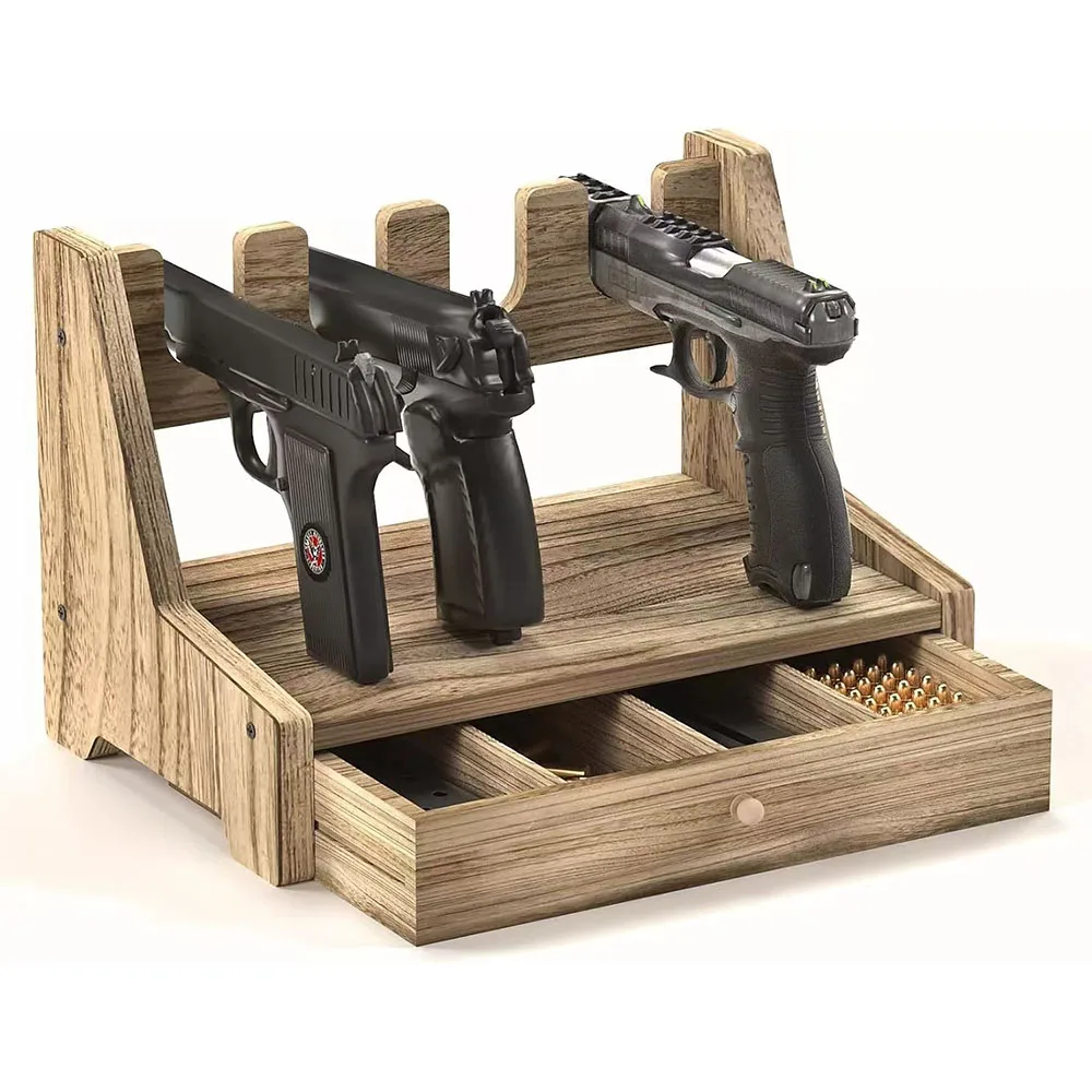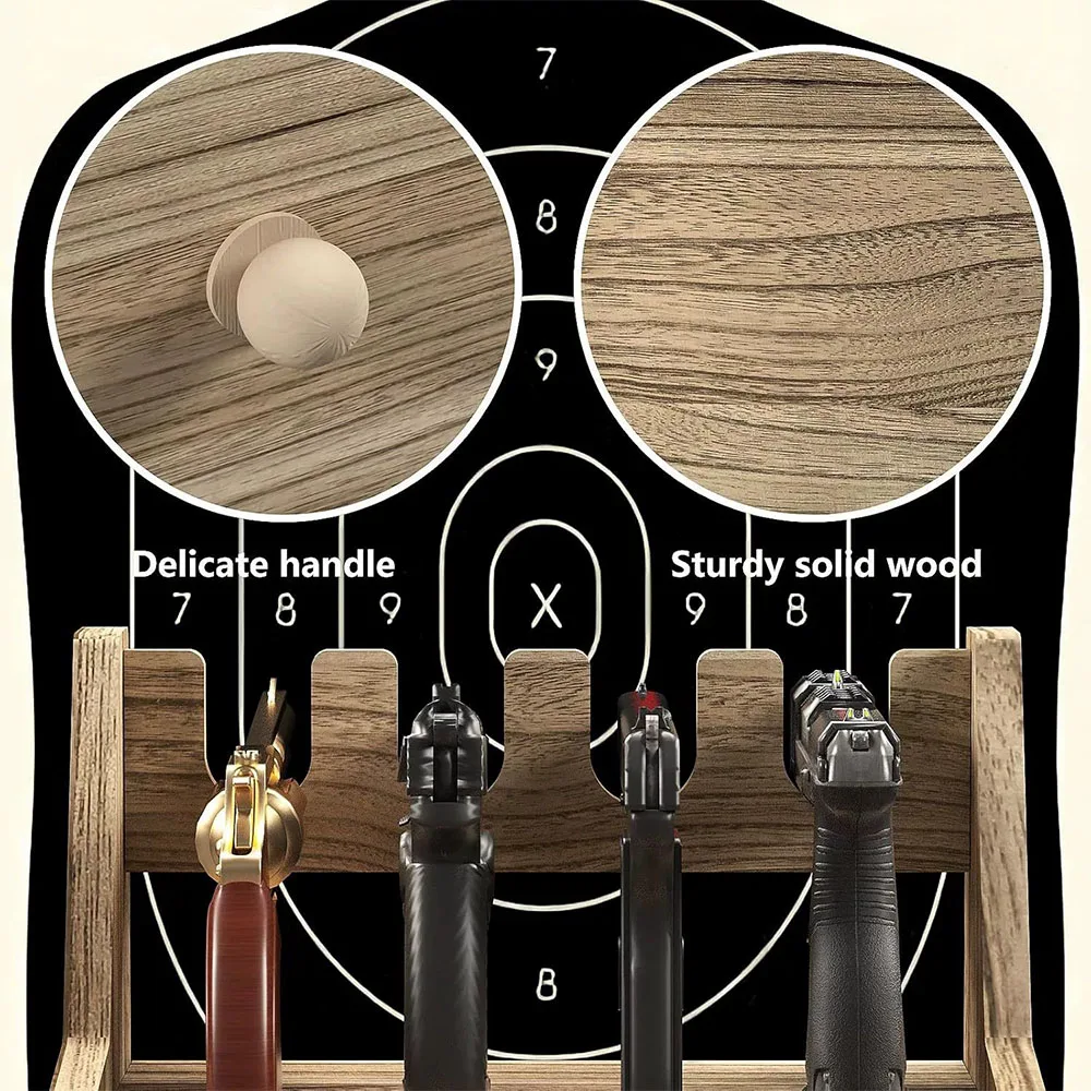 3.【Amplia aplicación】Cada ranura para pistola es 1.3 pulgadas de ancho, adecuadas para tipos de armas de fuego portátiles que se pueden colocar en ellas en diferentes combinaciones.Especialmente apto para salas de entrenamiento de tiro, pero también para escenas donde hay tipos de pistolas en la familia.